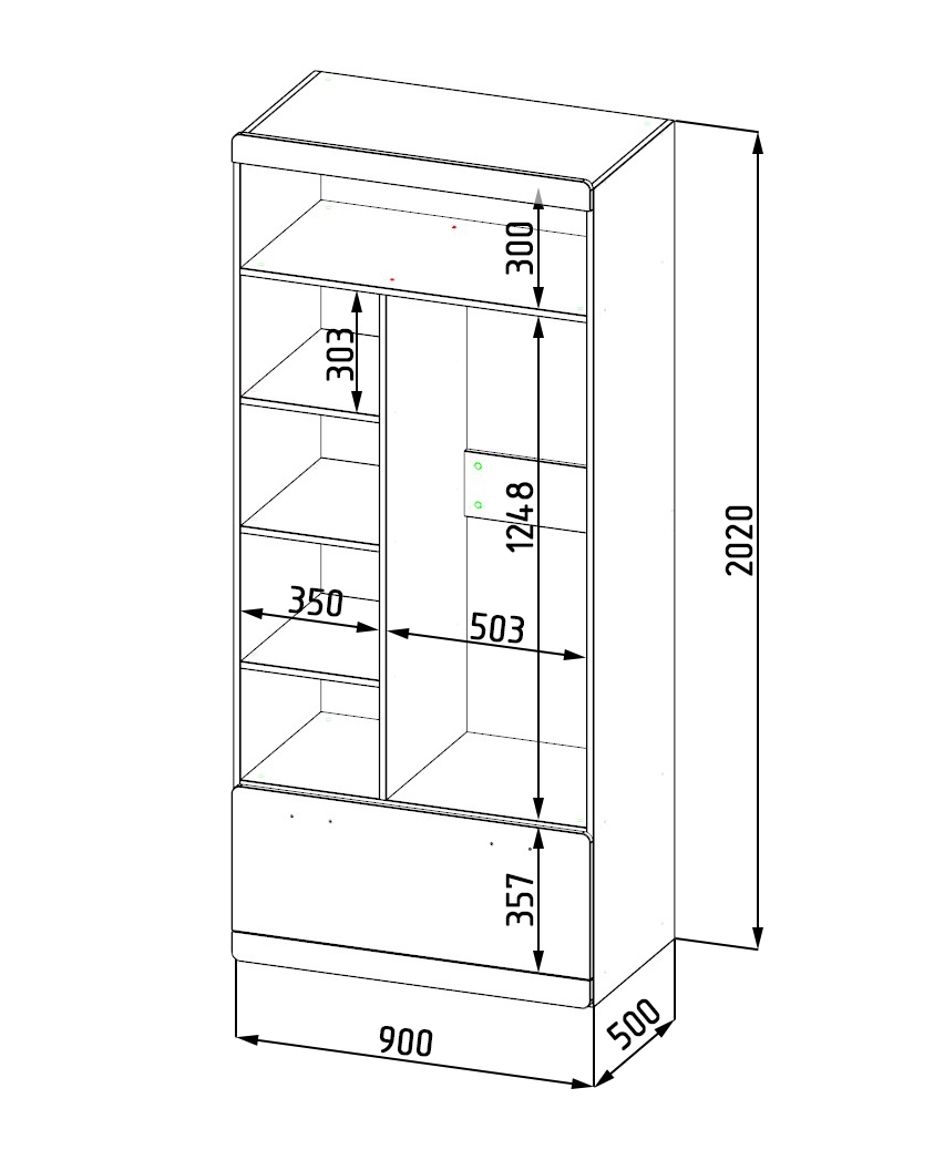 Габариты: ширина 900 х глубина 500 х высота 2020 мм