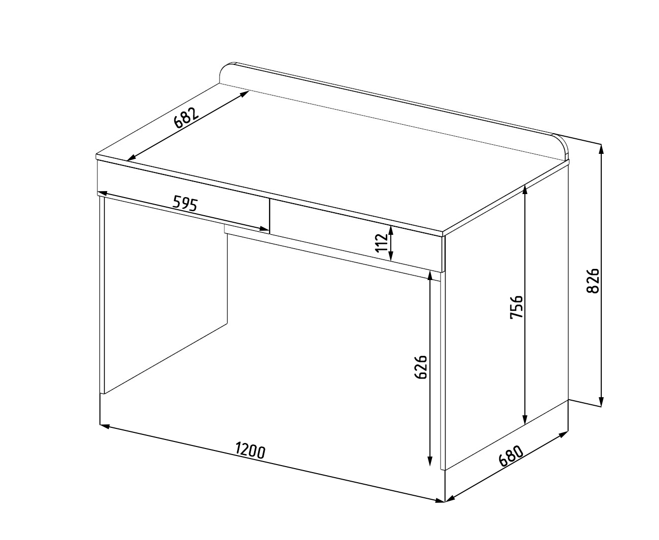 Габариты стола: ширина 1200, общая высота 826, глубина 682 мм