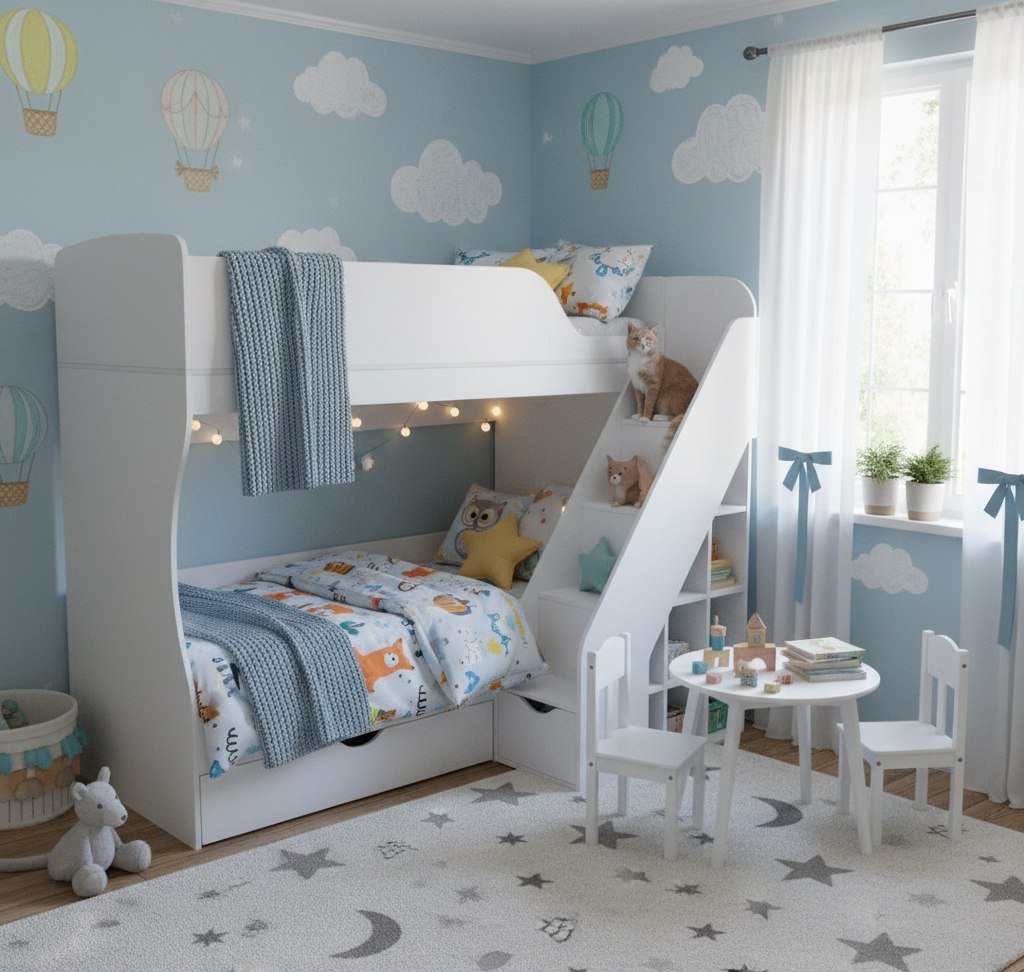 Компактная двухъярусная кровать Умка-2 с удобной лестницей