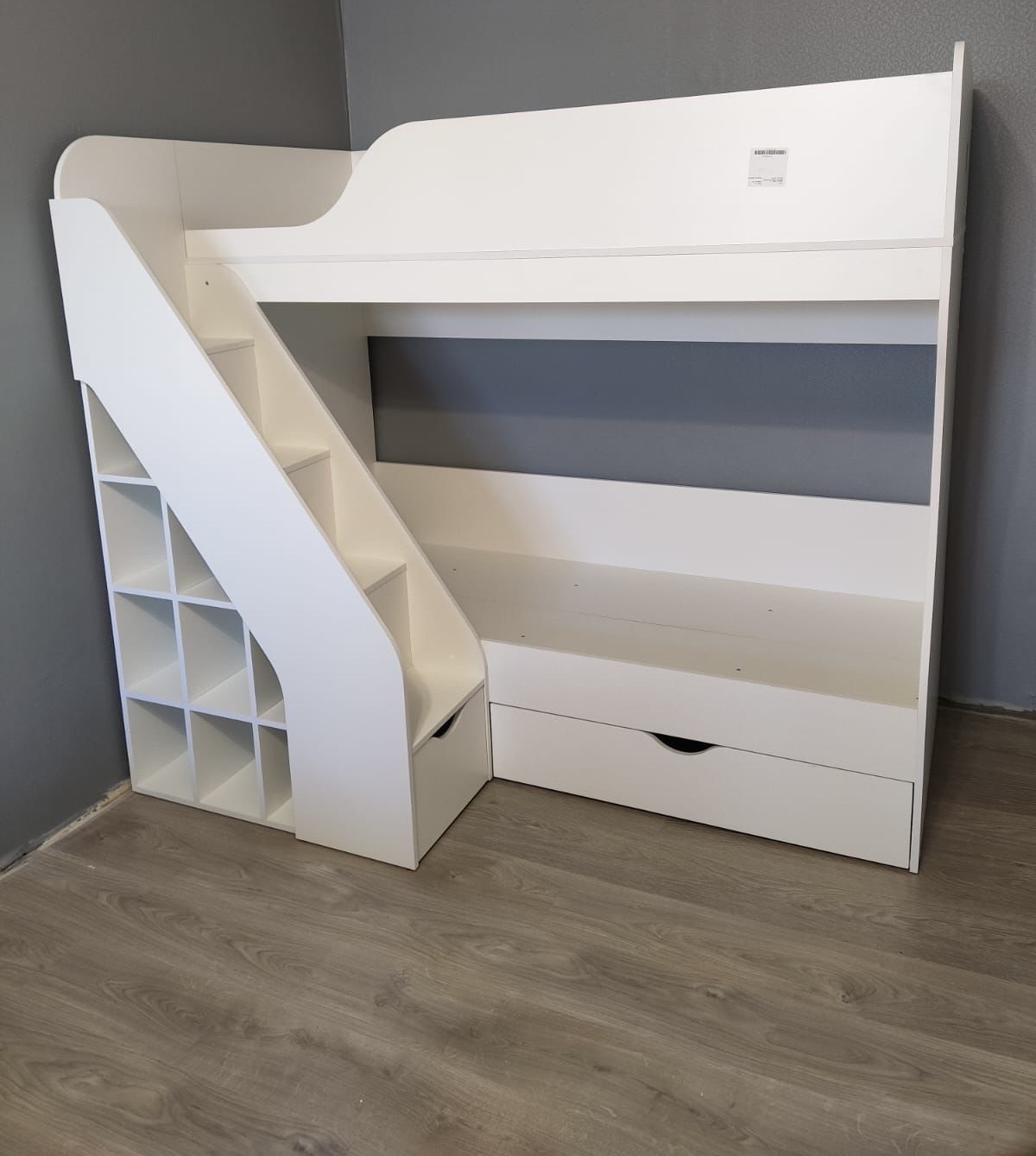 Удобная, безопасная лестница со встроенными полочками для книг и игрушек и комфортная высота кровати.