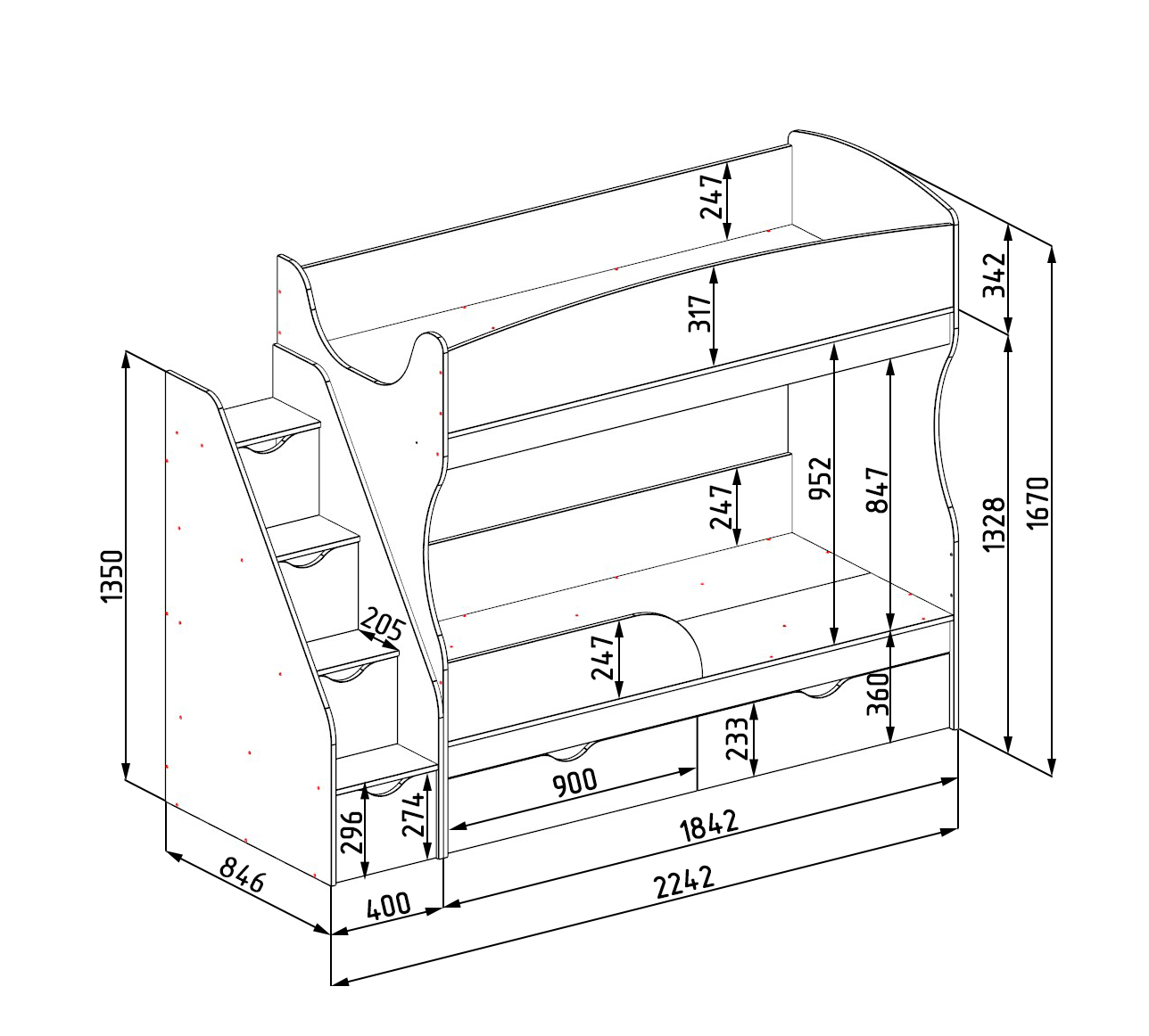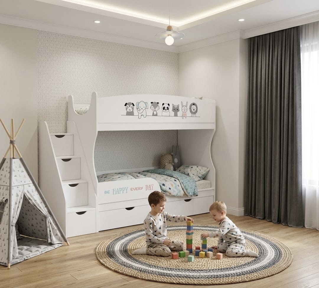 * Кровать универсальна - при сборке лестницу можно устанавливать как справа, так и слева кровати.