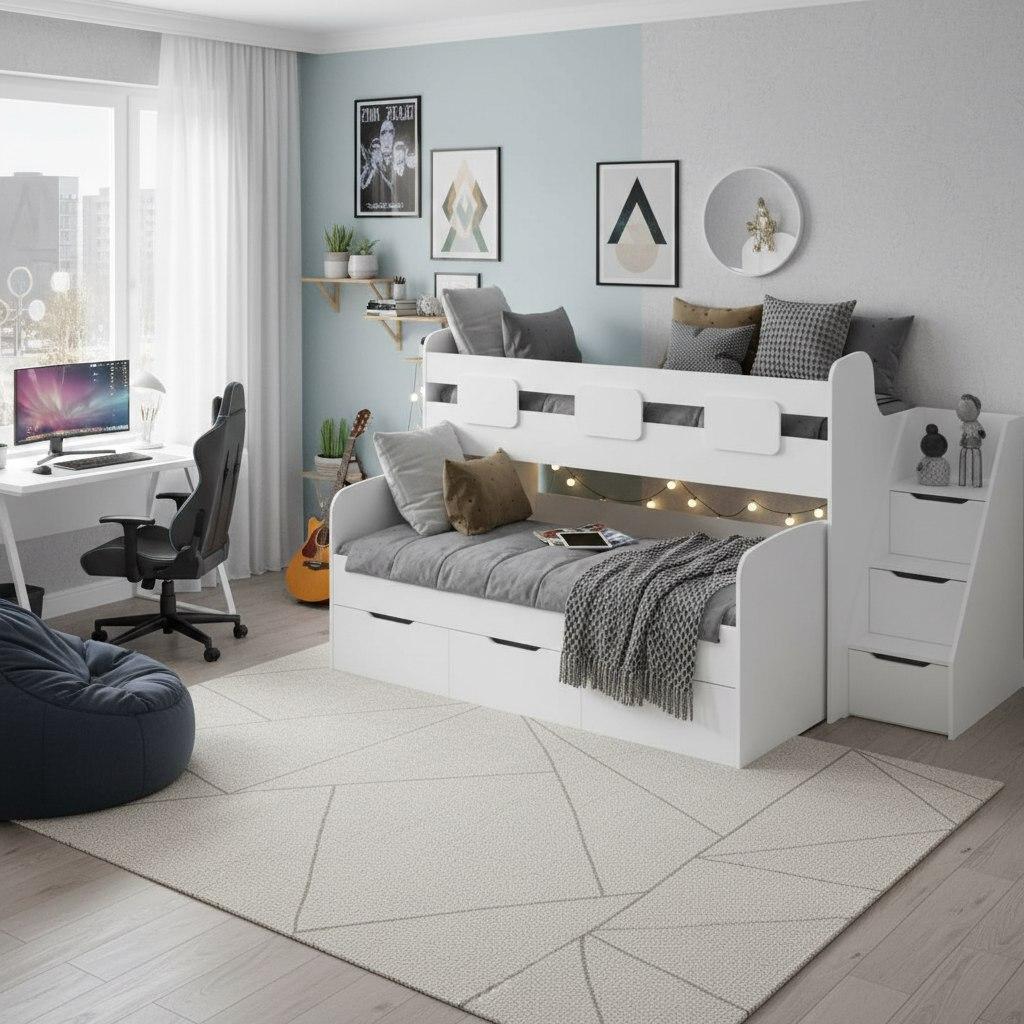 Ваше Уютное Пространство с нашей популярной двухъярусной кроваткой "Городок"!