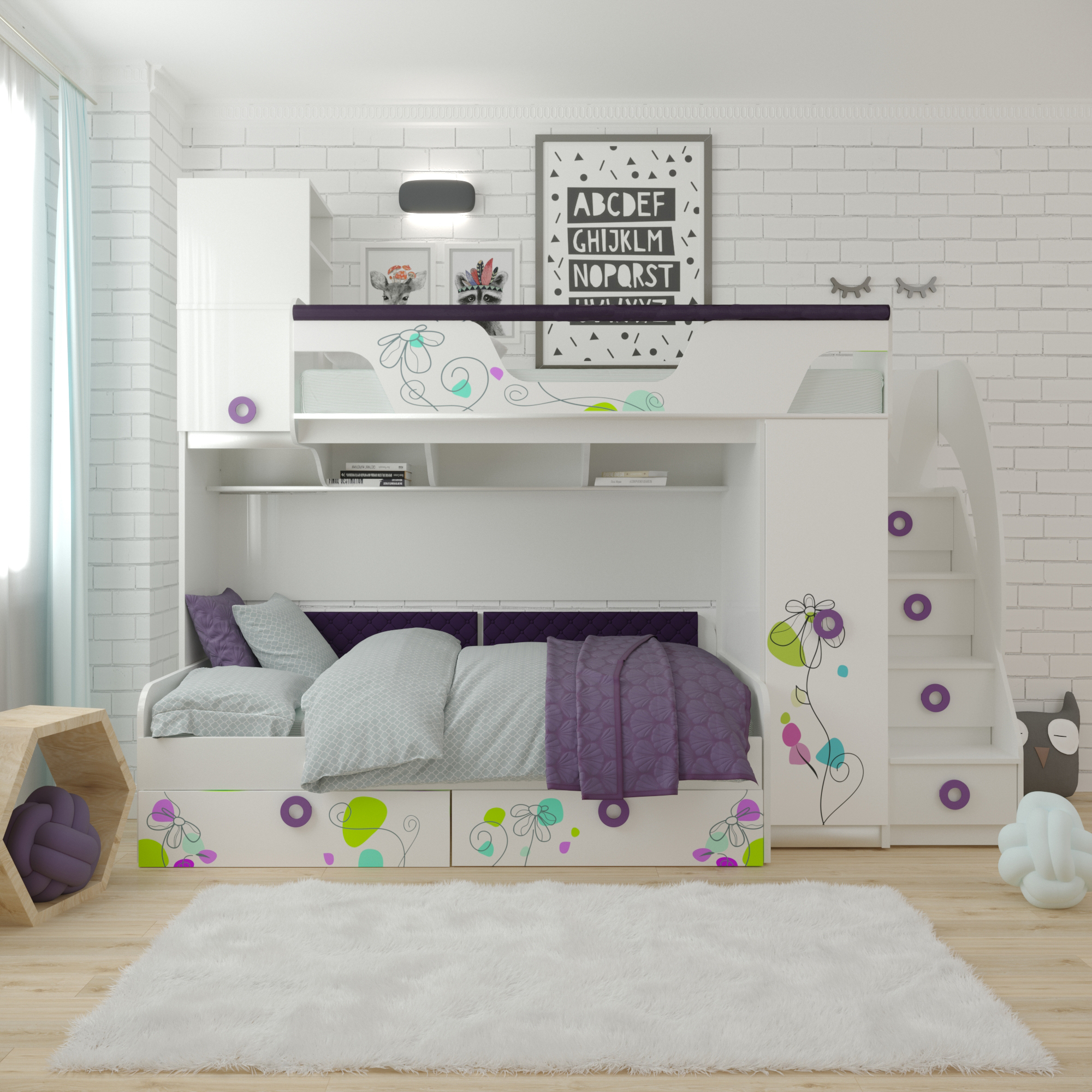 Кровать 2-х ярусная коллекции мебели Цветы: кровать Цветы-6 + кровать Цветы-4
