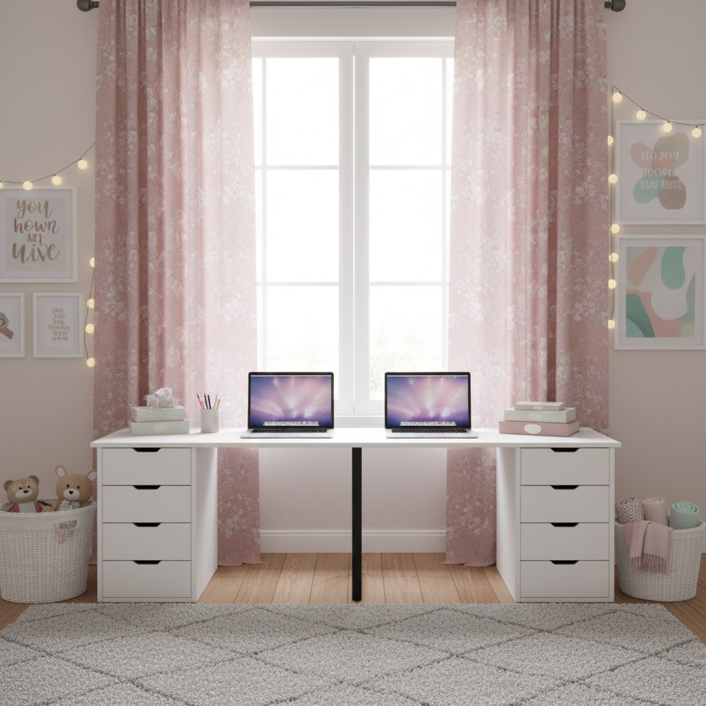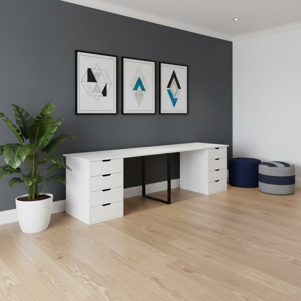 Стол для двоих детей с вместительными тумбами - функциональное решение, которое позволит детям комфортно заниматься учебой.