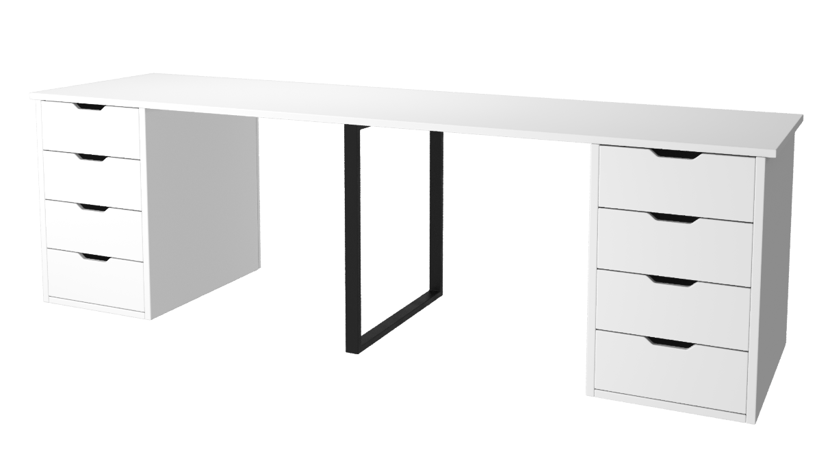 —Стол Дуэт 2200 мм (две тумбы) белый + опора черная. Столешница 22 мм