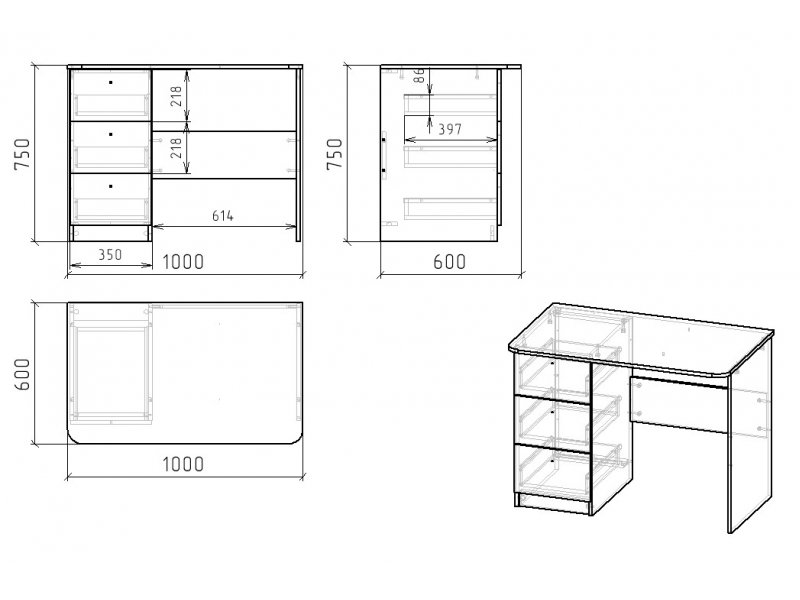 Габариты стола: ширина 1000 х высота 750 х глубина 600