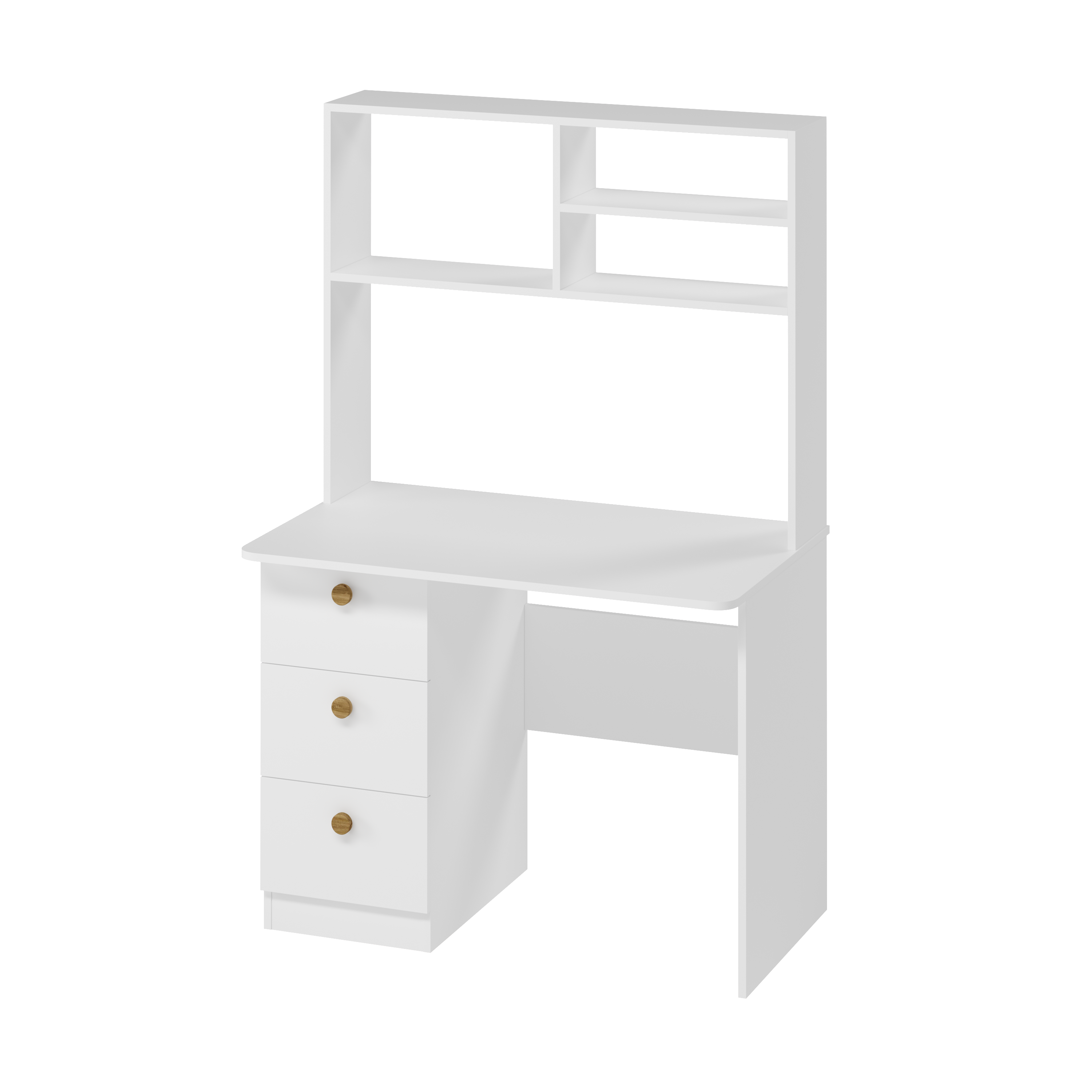 Практичный и удобный стол с надстройкой займет немного места в комнате и в тоже время позволит разместить учебники, любимые книги и игрушки.