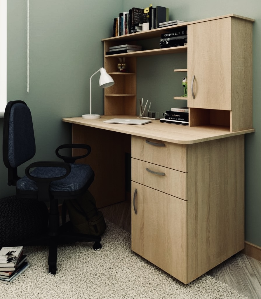 Письменный стол с надстройкой позволит разместить в нем всё необходимое для учебы.