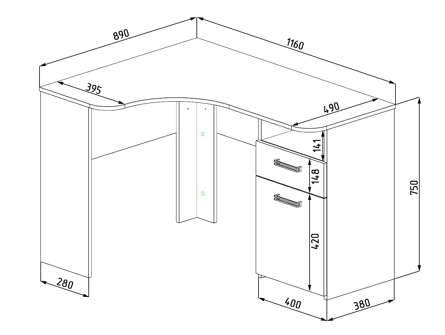 Габариты: ширина 1160 х высота 750 х глубина 890 мм
