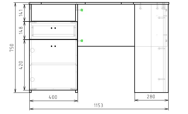 Габариты стола: ширина 160 х высота 750 х глубина 890 мм