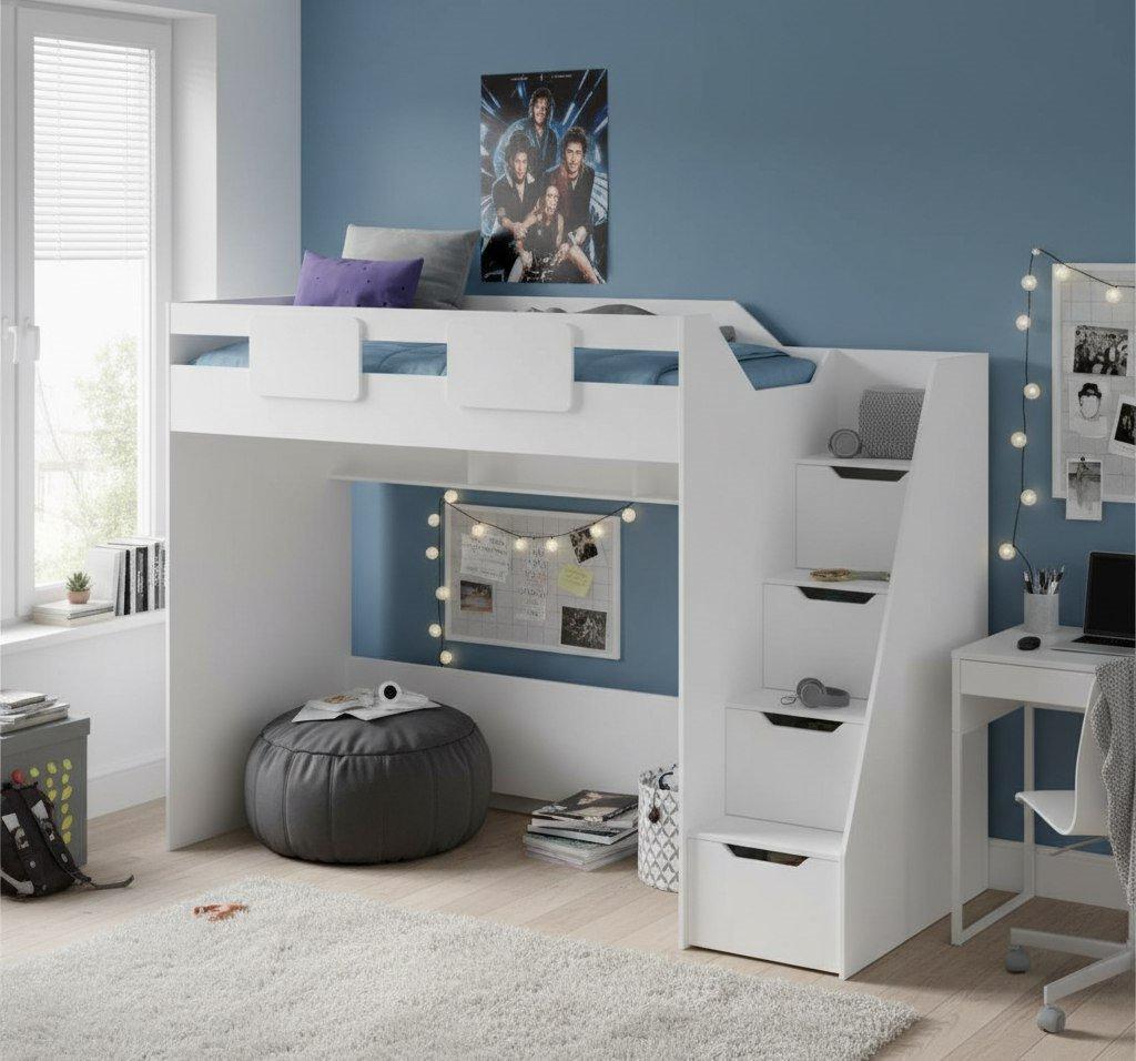 Кровати-чердаки от «Династия Kids» представляют собой уникальное решение для оптимизации пространства в детской комнате, объединяя спальное место с функциональными зонами для учебы, игр. Рассмотрим некоторые из популярных моделей:- «Мозаика». Эта конструкция предлагает компактное решение с удобной лестницей и просторным местом под кроватью, которое можно использовать как рабочую зону или место для хранения. Простой, функциональный дизайн делает её идеальной для любого интерьера.