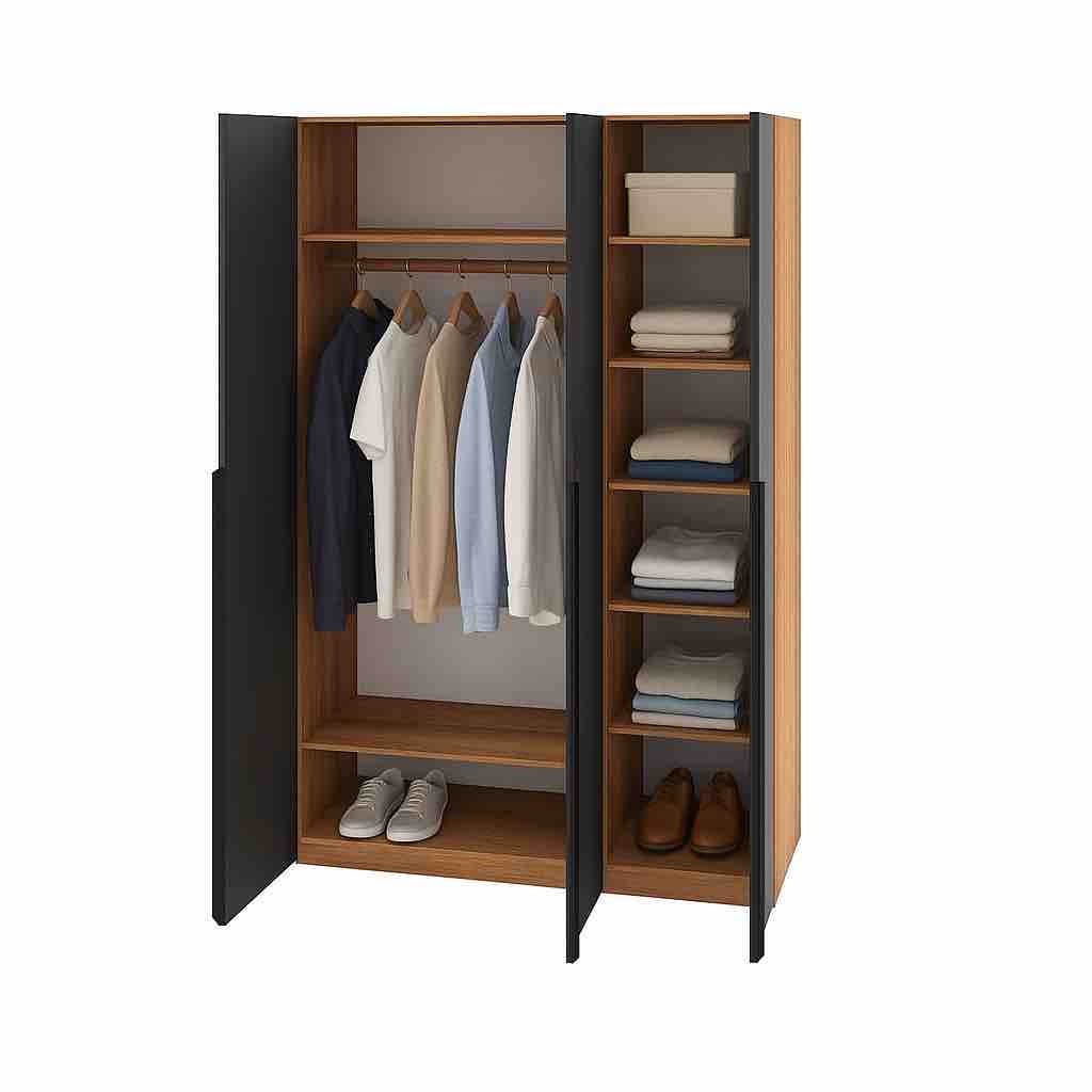 Трехдверный распашной шкаф коллекции мебели Брайт Графит - функциональное решение для хранения одежды, обуви и аксессуаров.