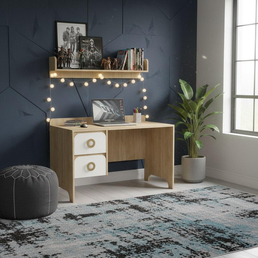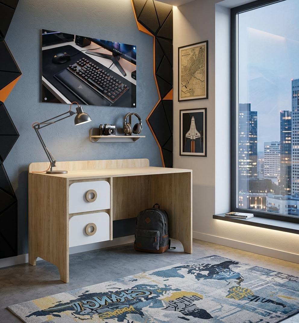 —Стол письменный Юни ширина 1200 мм (дуб сонома+белый)