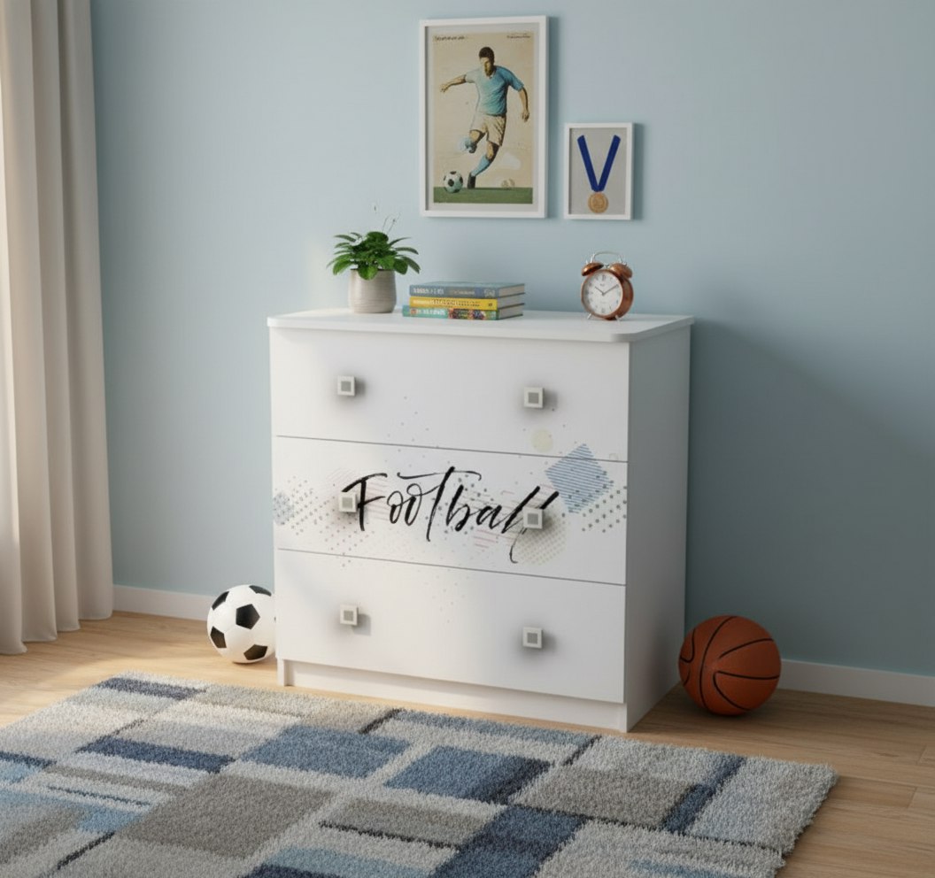Мебель выполнена из сертифицированного, качественного, экологически чистого ЛДСП Е0,5 в белом цвете с принтом.