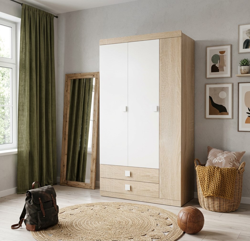 Оттенок натурального дерева "дуб сонома" дает ощущение комфорта и единения с природой, а воздушный белый цвет в интерьере работает как основа для ярких штрихов.