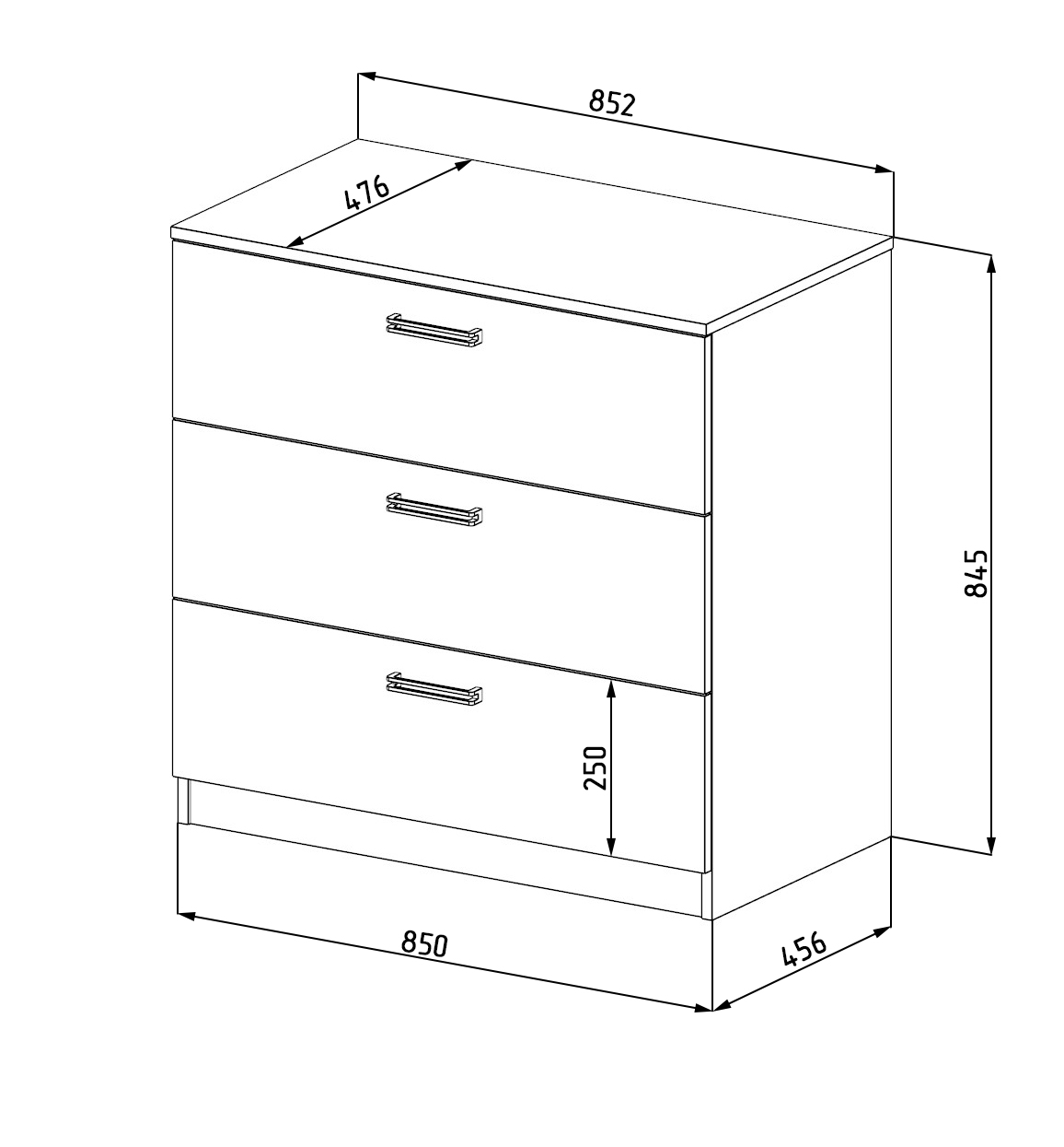 Габариты комода: ширина 852 х высота 845 х глубина 476 мм