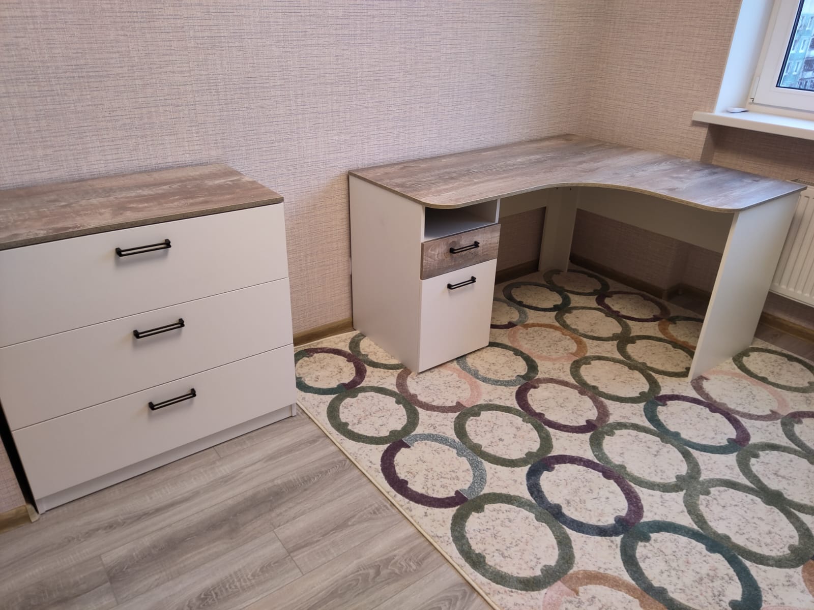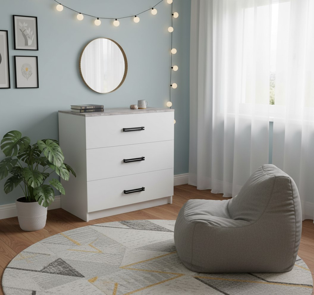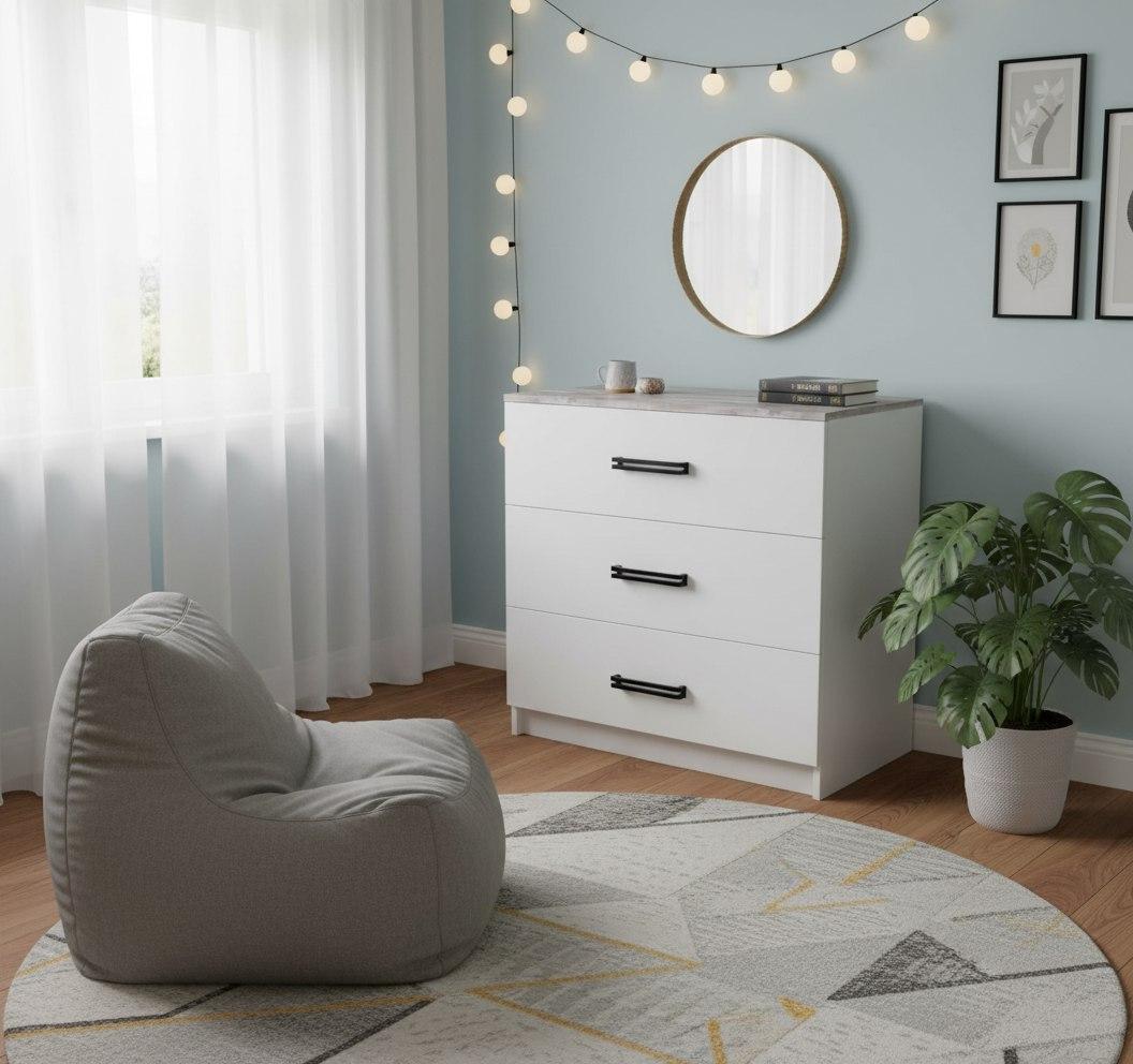 Мебель выполнена из качественного, экологически чистого ЛДСП класса Е0,5 в сочетании цветов бетон пайн + белый.