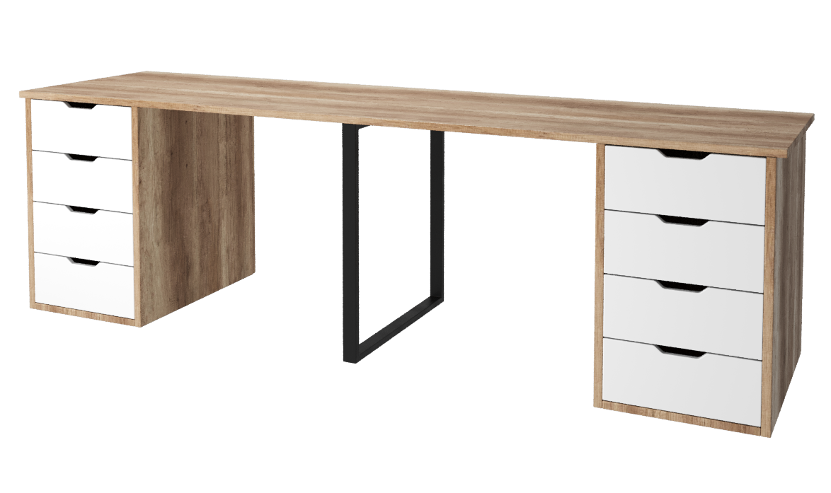 Стол Дуэт 2200 мм (две тумбы) дуб каньон+белый. Опора черная. Столешница 22 мм