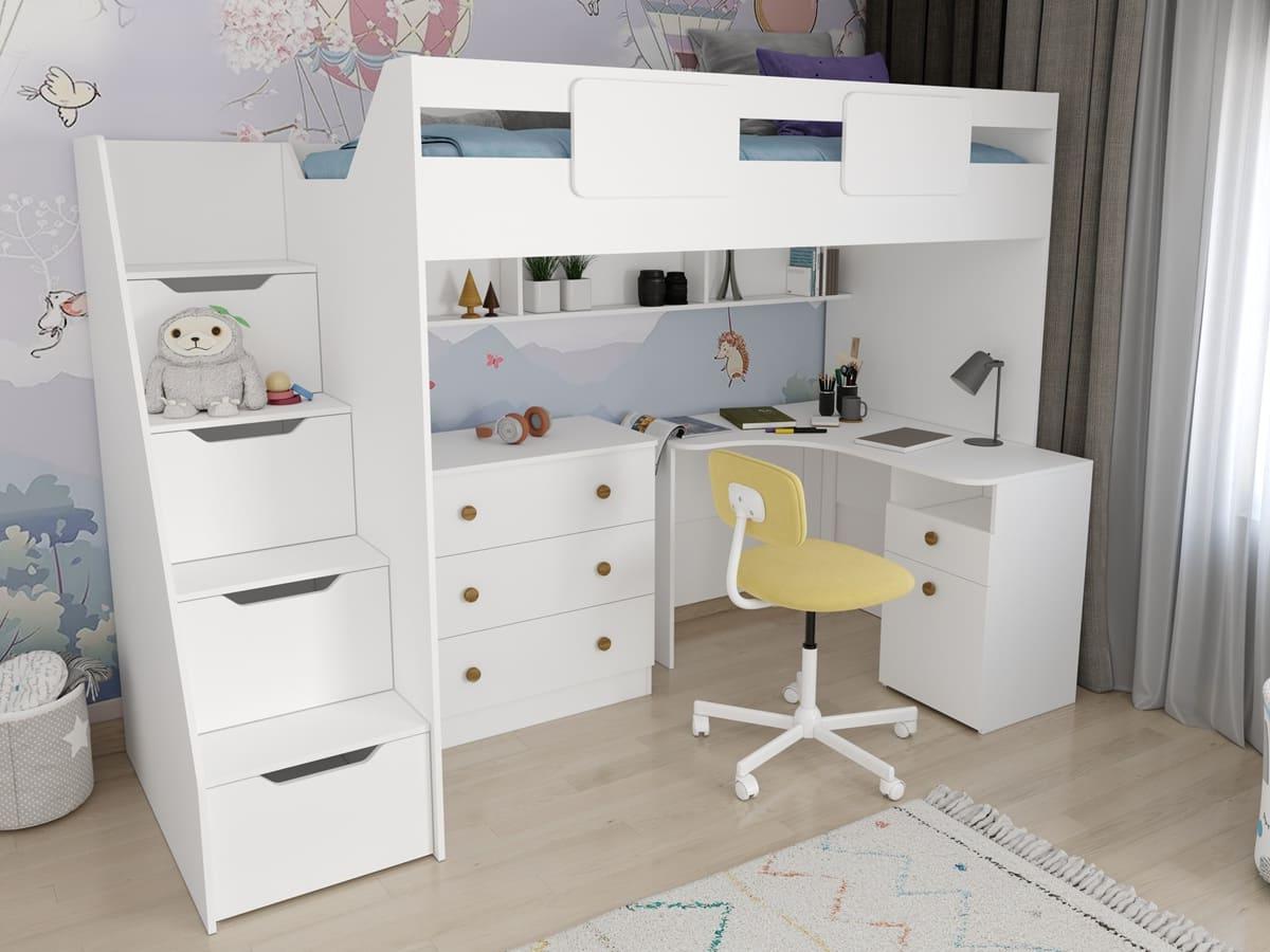 кровать-чердак Мозаика-2 + стол угловой Умка New + комод Умка New