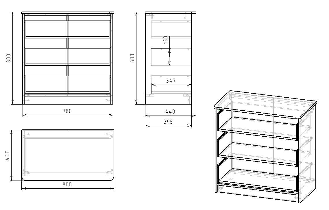 Габариты комода: ширина 800 х высота 800 х глубина 440 мм