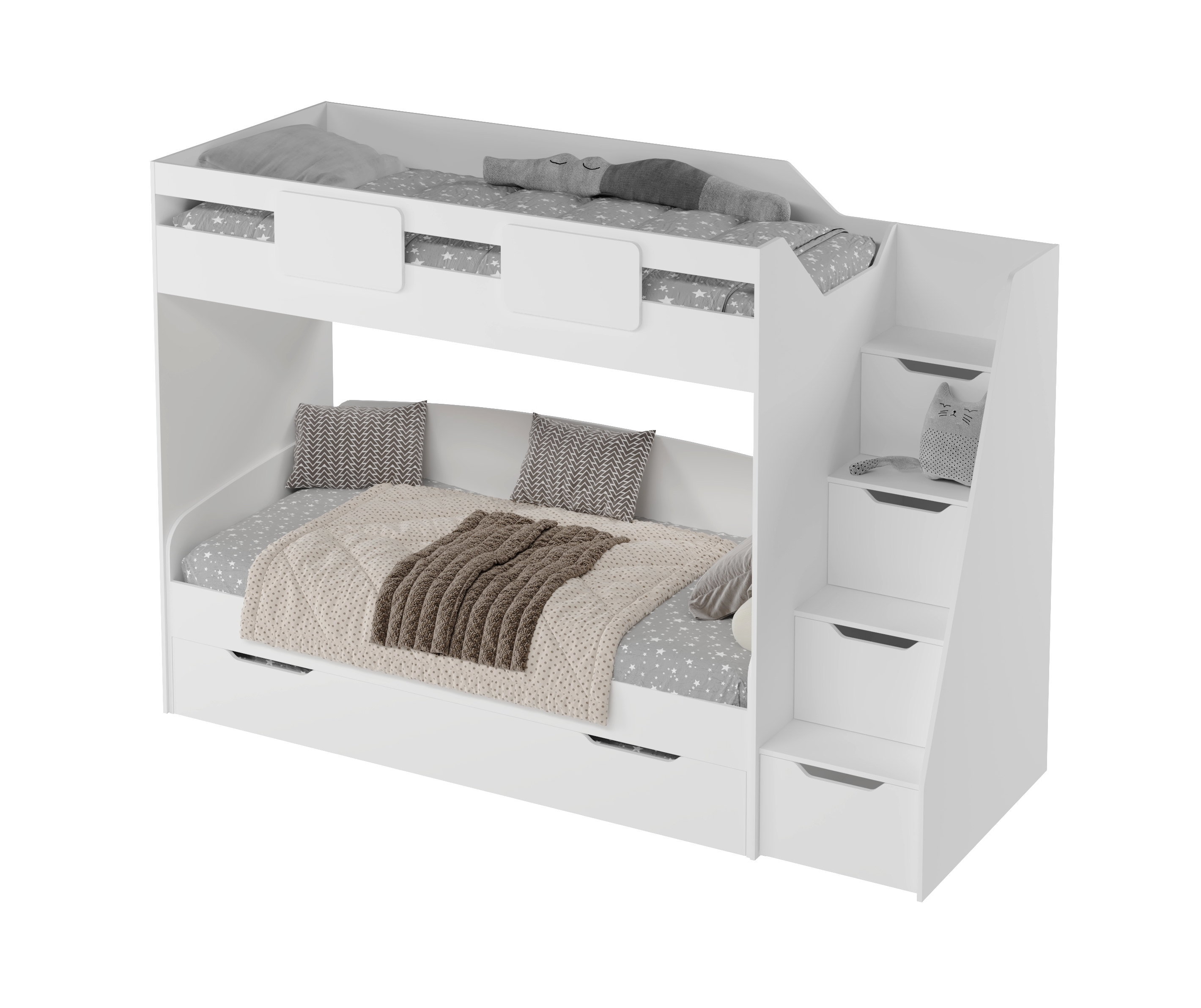 Вместо них - цельный и прочный настил из ЛДСП, который выдерживает сверхвысокую нагрузку и позволяет расположиться даже взрослому с ребенком.
