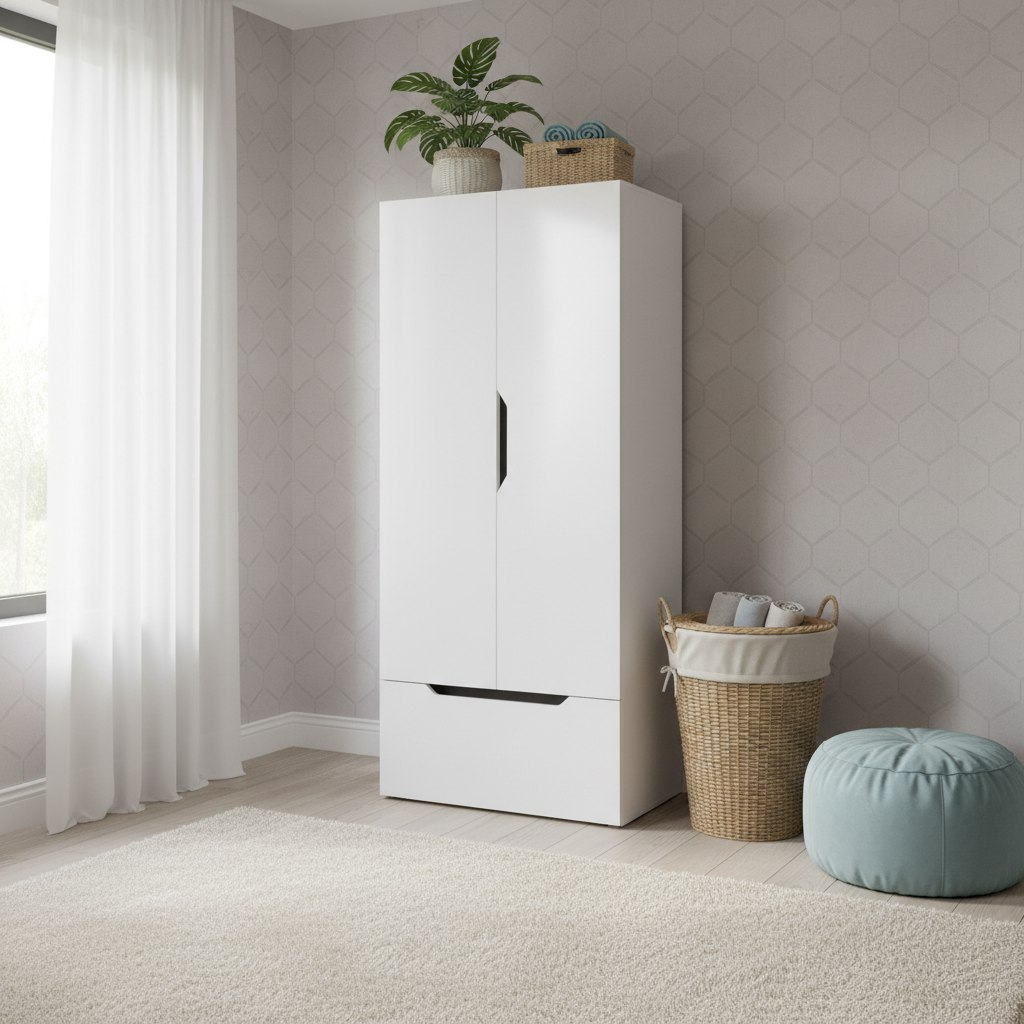 Мебель выполнена из сертифицированного, качественного, экологически чистого ЛДСП Е0,5 в белом цвете.