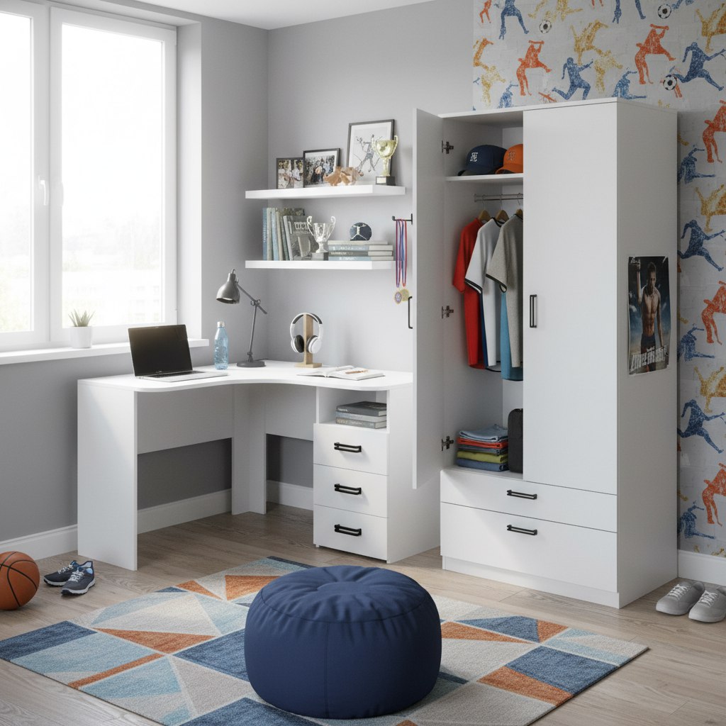 Стол угловой + шкаф гардеробный коллекции Престиж от Династия Kids