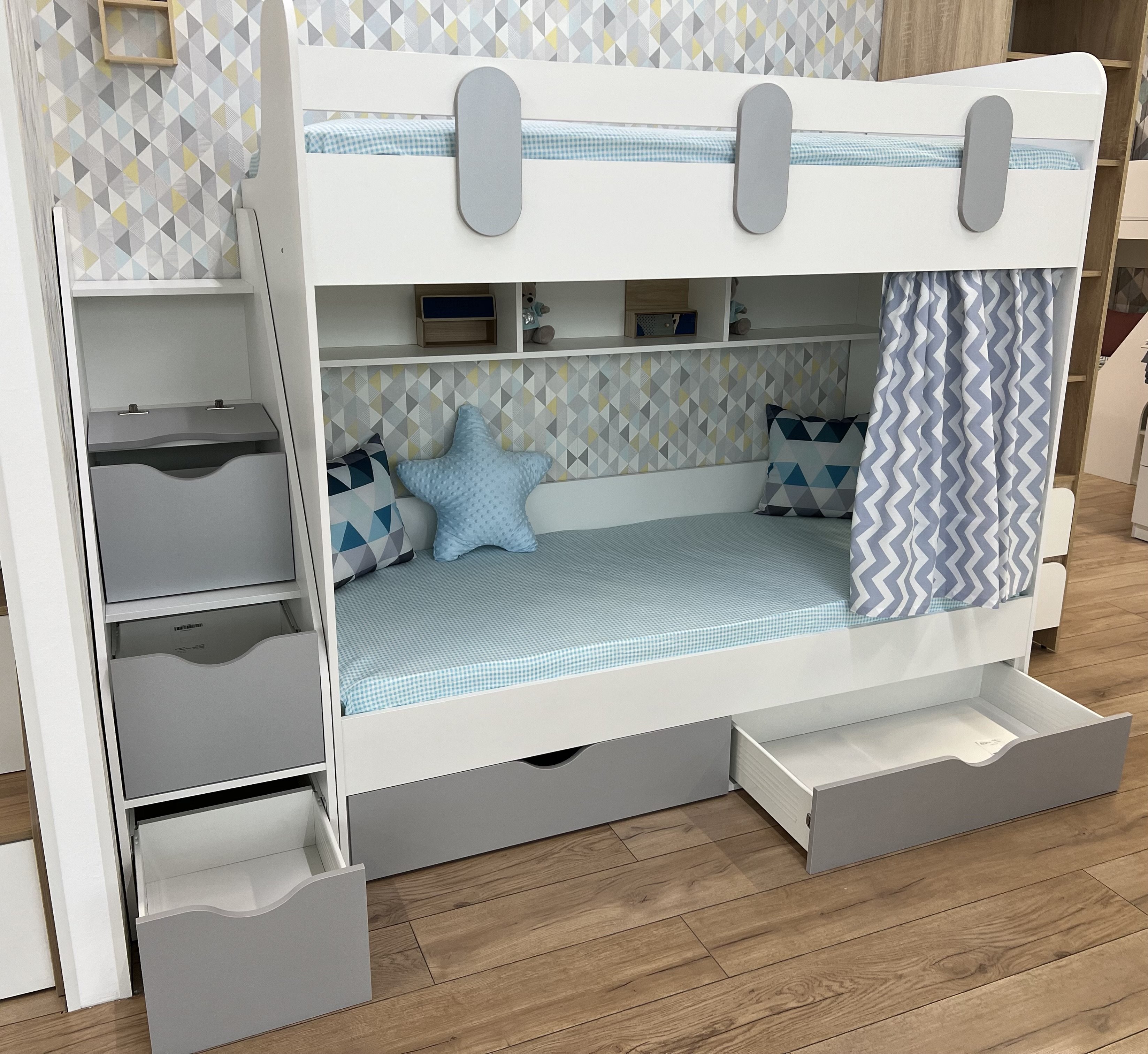 Габариты кровати с учетом лестницы: ширина 2242 х высота 1716 х глубина 846 мм