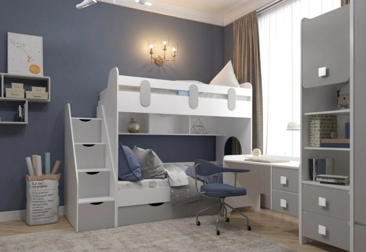 кровать 2-х ярусная Фортуна + стол Юниор-2 + стеллаж Юниор-2