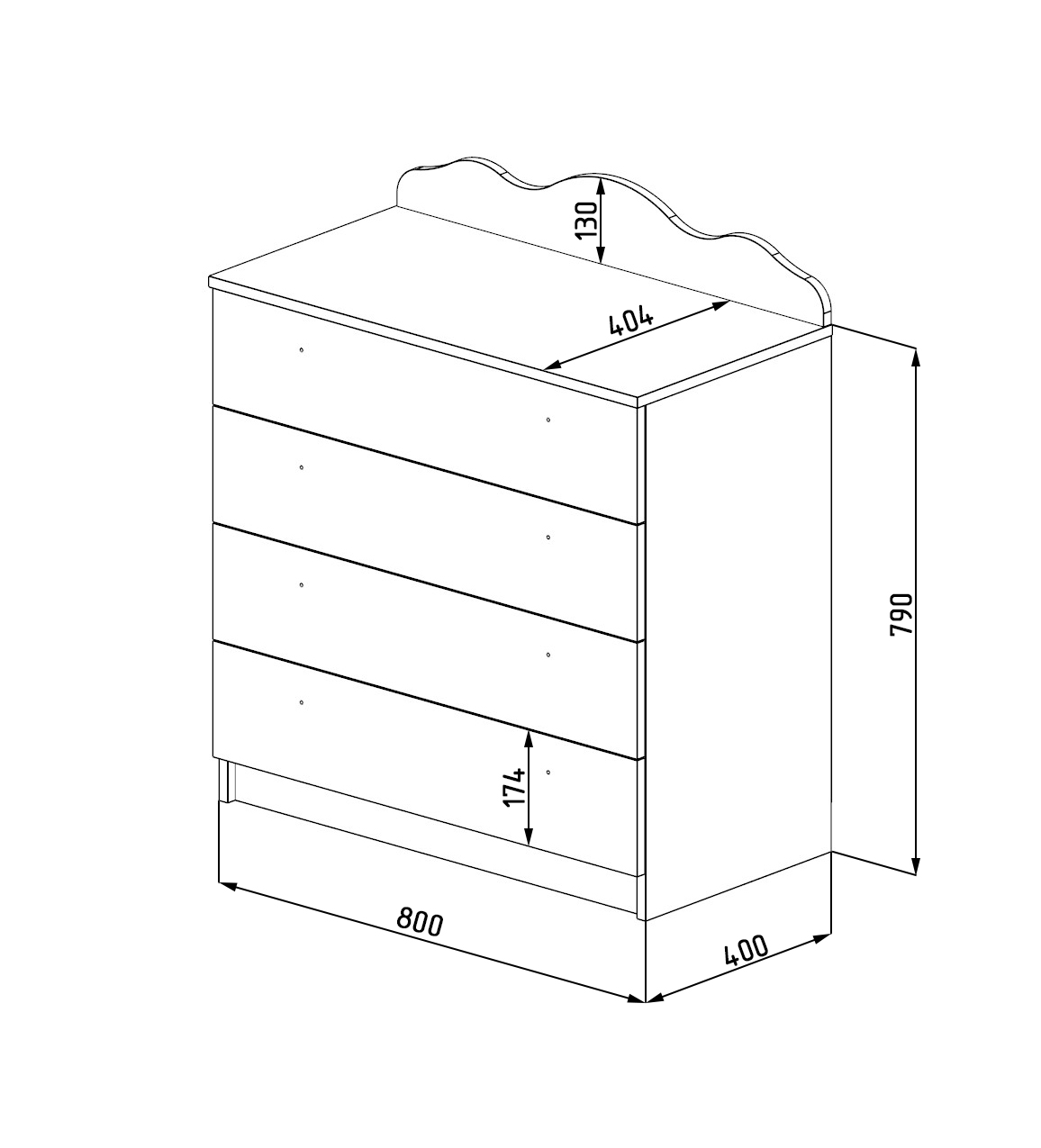 Торцы комода закруглены и обработаны ударопрочной кромкой ПВХ