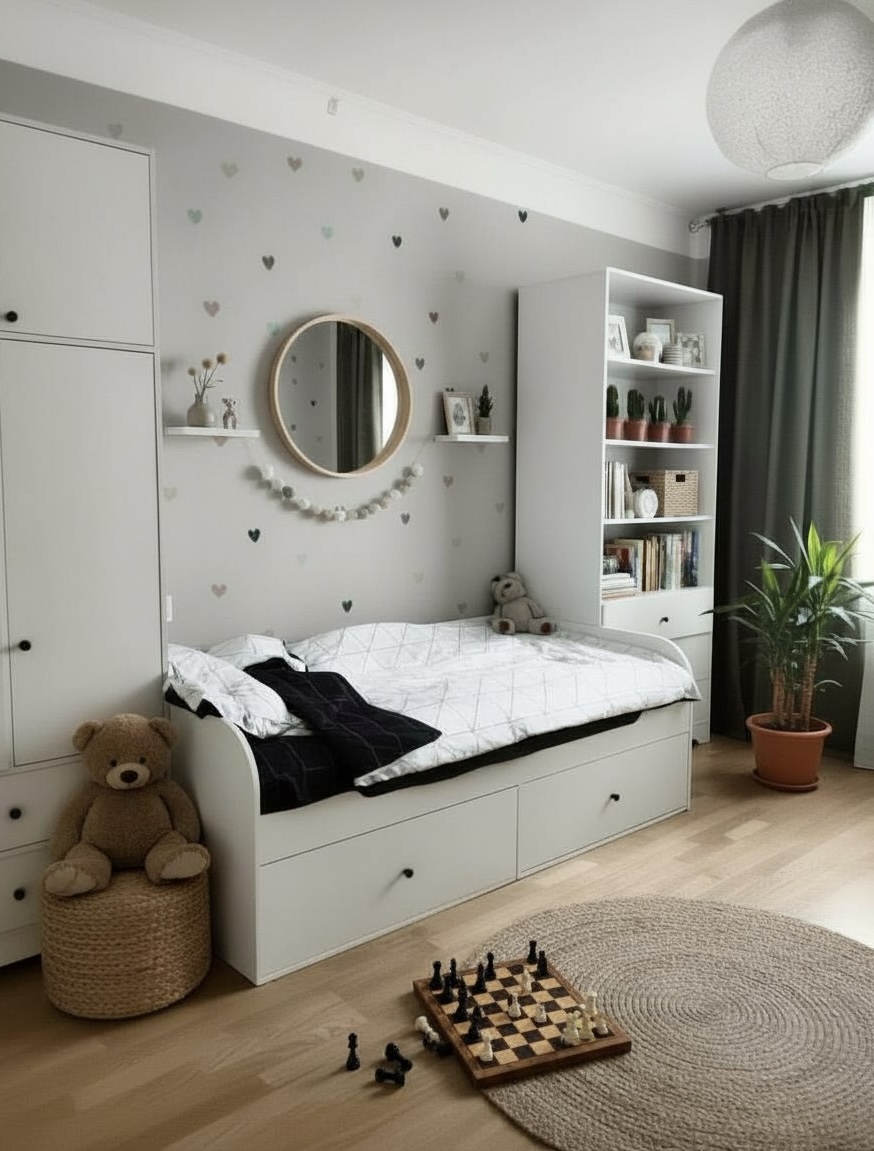 Белый цвет придаст комнате уютную и спокойную атмосферу, а также легко впишется в любой современный или скандинавский стиль.