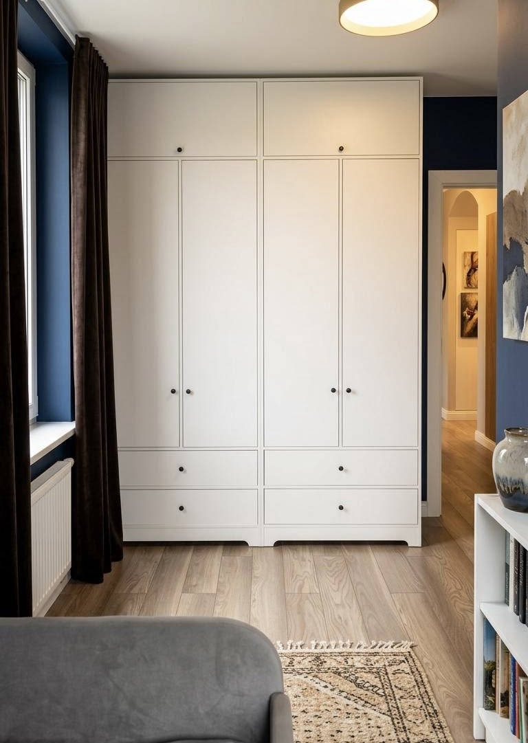 Матовые фасады не только придают шкафу изысканный вид, но и отлично скрывают следы использования.