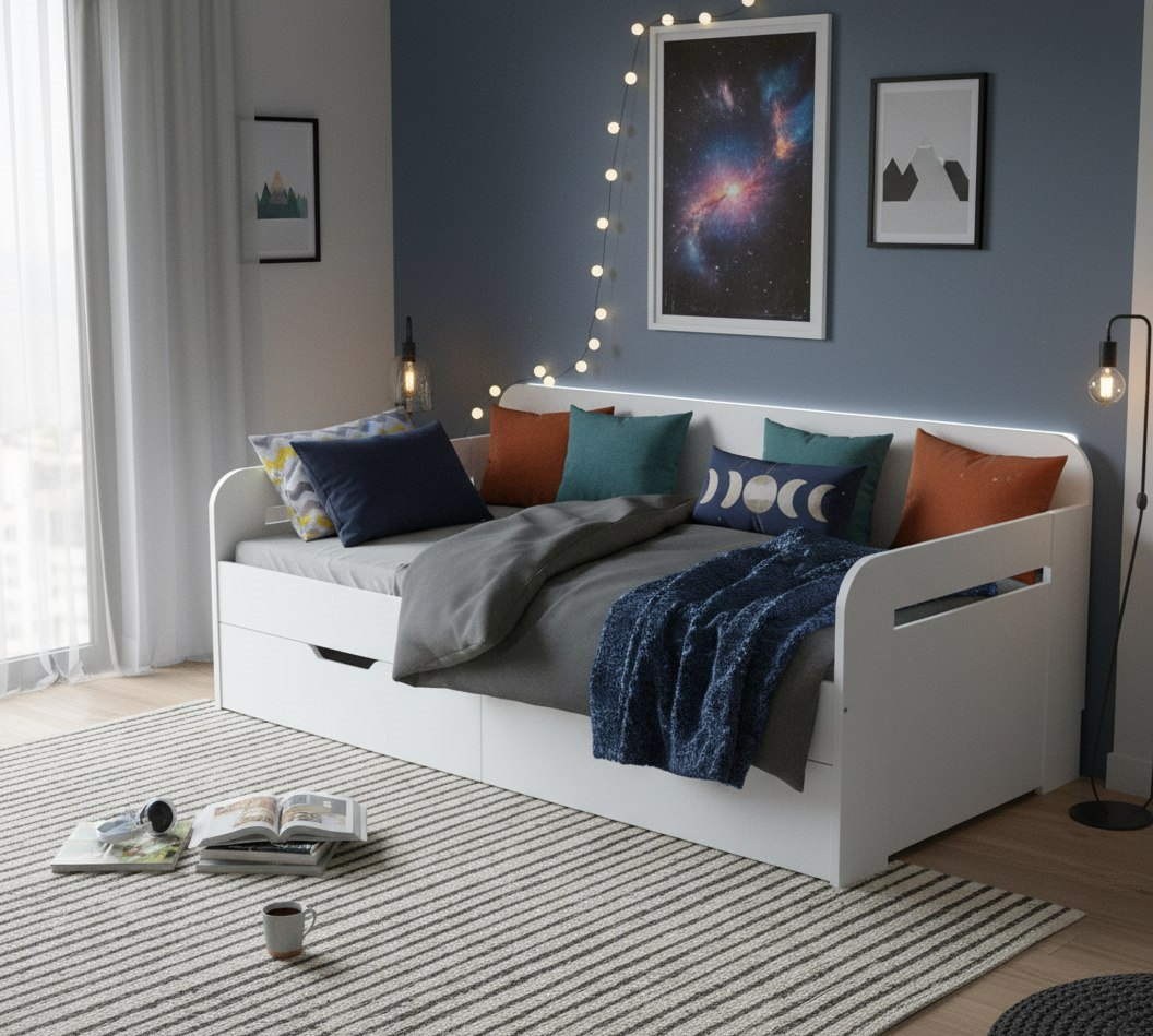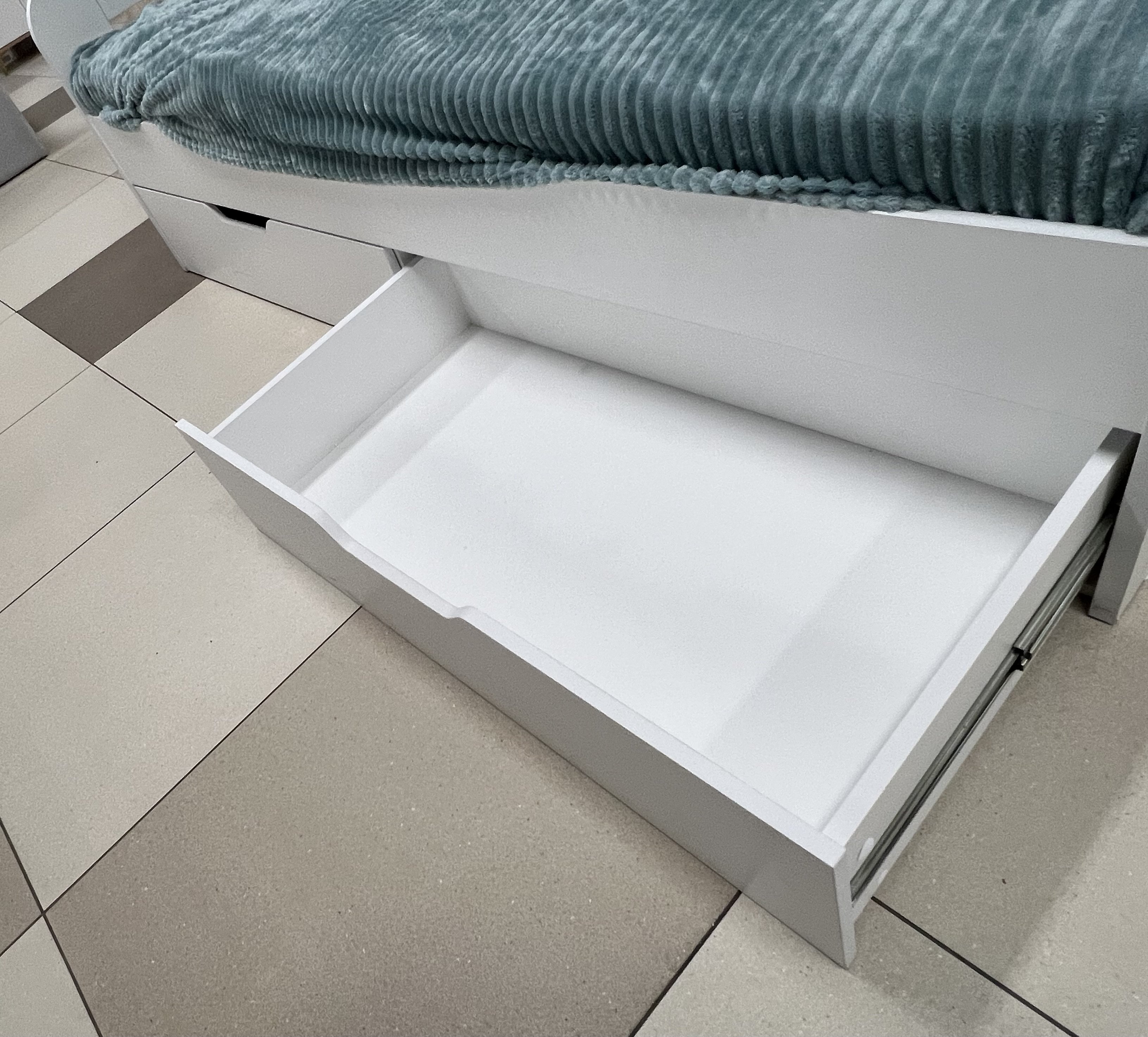 Высокая нагрузка на спальное место. Полновыкатные прочные ящики! |