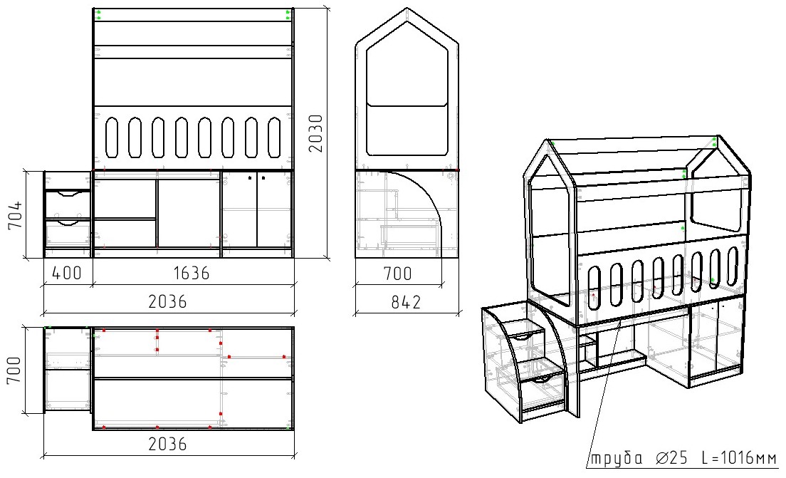 Матрац и занавески не входят в стоимость кровати.