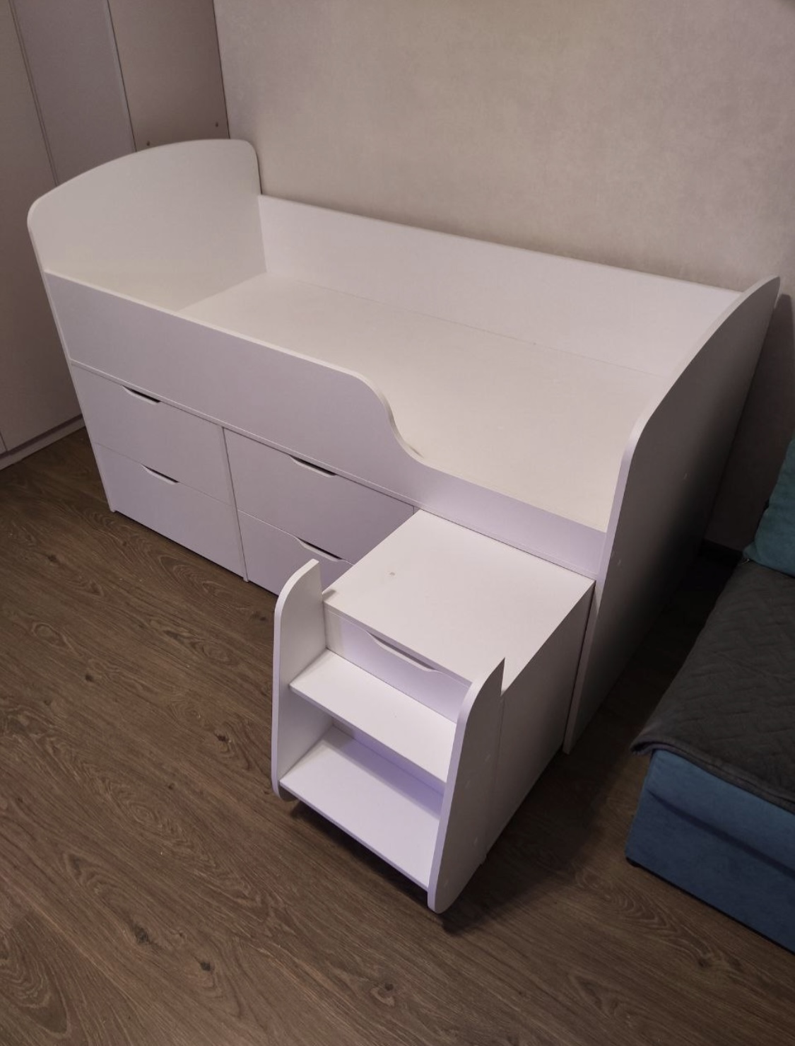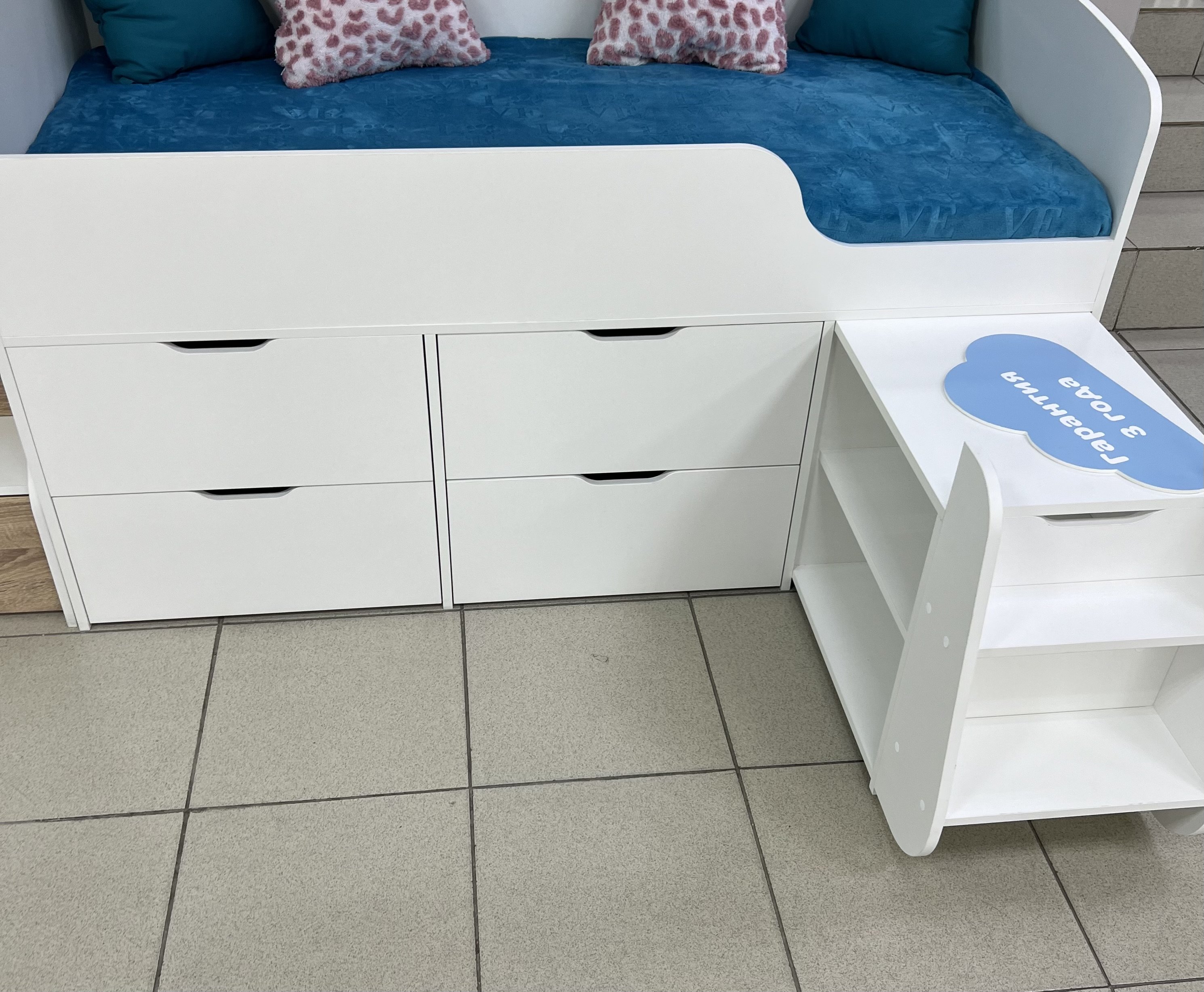 Четыре вместительных выдвижных ящика помогут ребенку хранить личные вещи и игрушки в собранном виде.