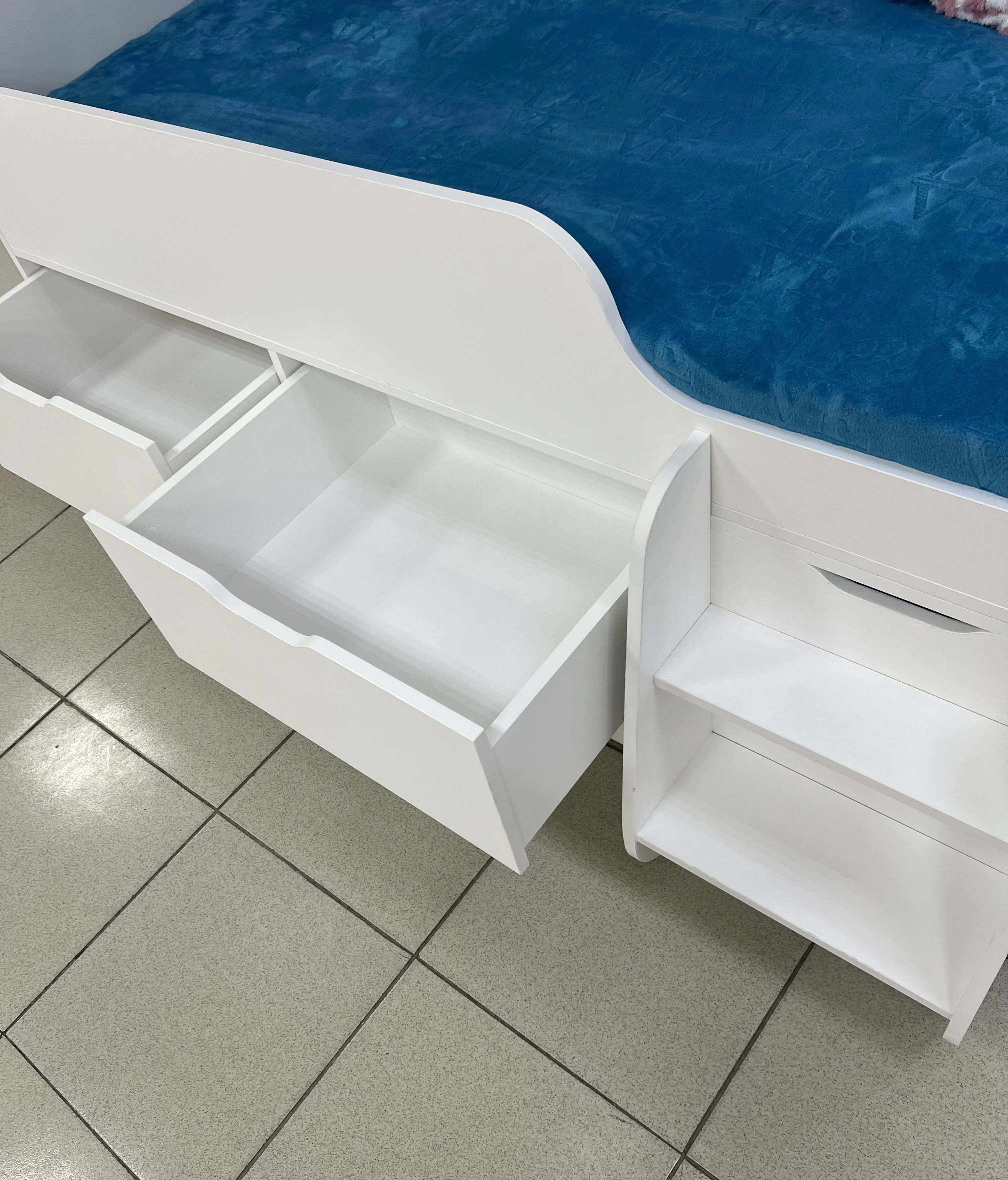Вместо них - цельный и прочный настил из ЛДСП, который выдерживает сверхвысокую нагрузку и позволяет расположиться даже взрослому с ребенком.