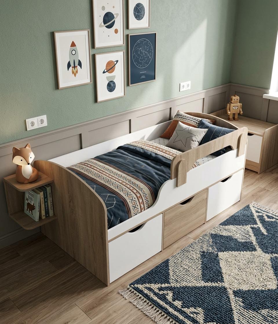 * Три вместительных выдвижных ящика помогут всегда хранить личные вещи и игрушки ребенка в собранном виде.
