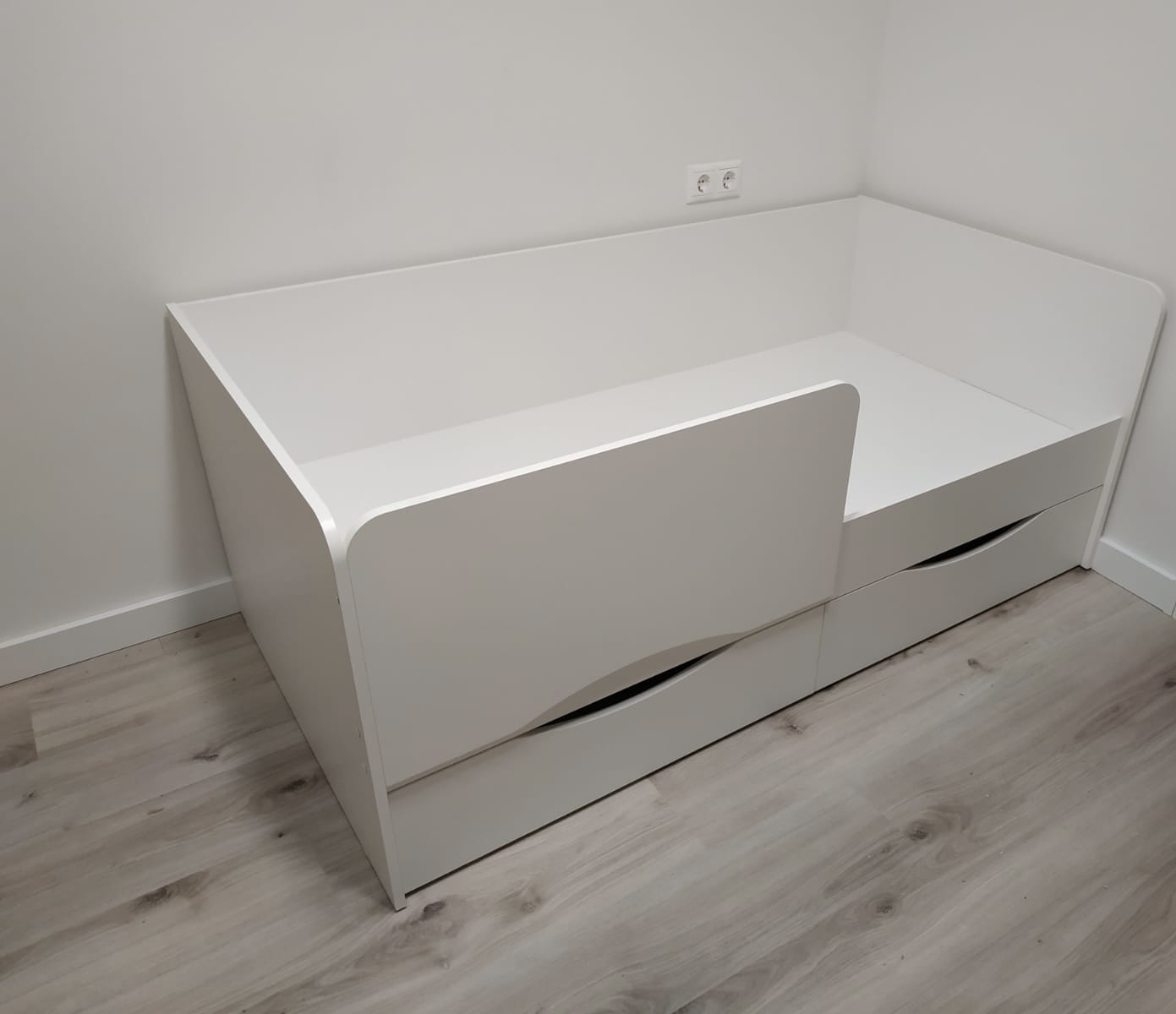 Торцы кровати закруглены и обработаны ударопрочной кромкой ПВХ