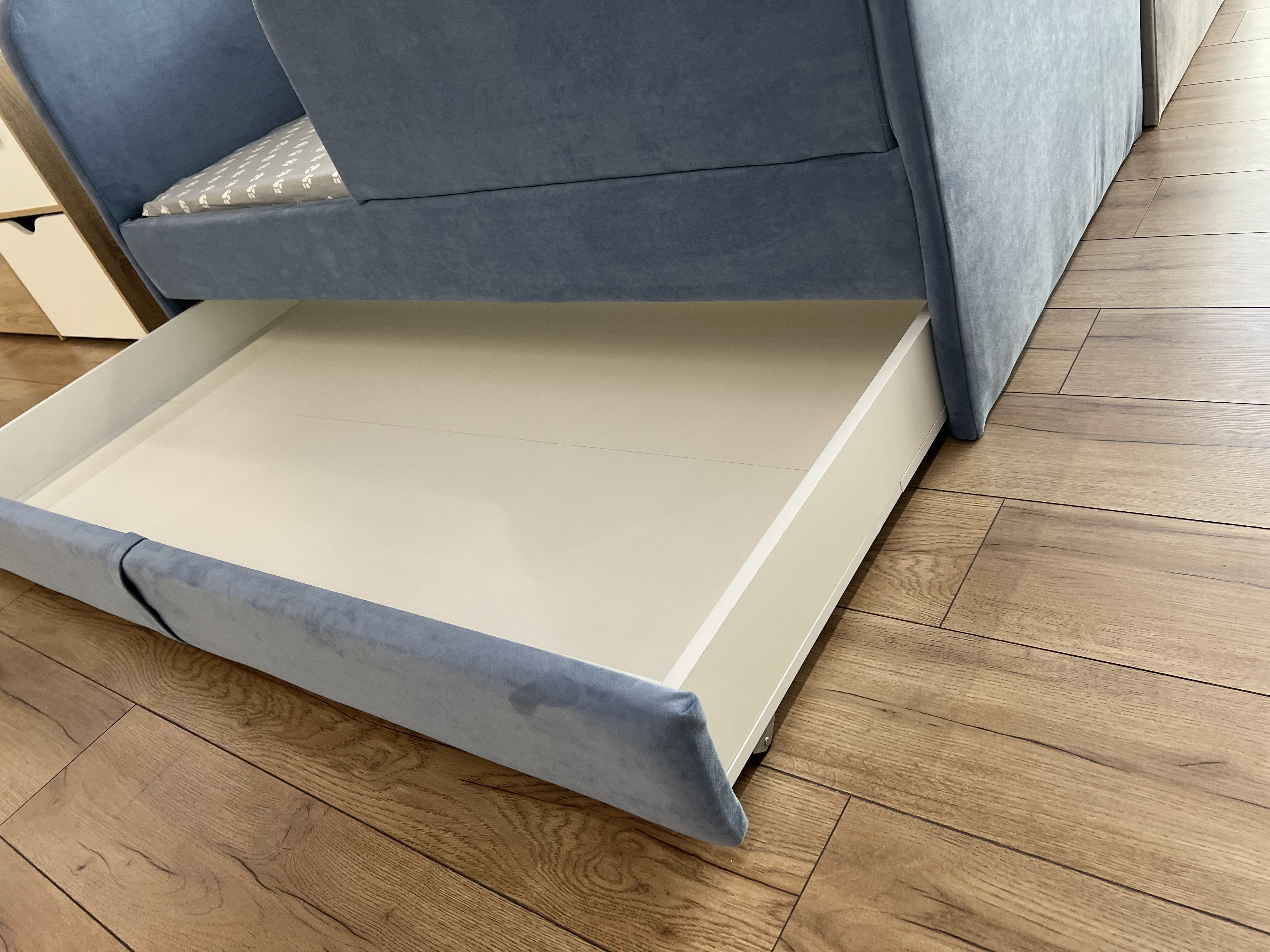 Кровать имеет вместительный выдвижной ящик.
