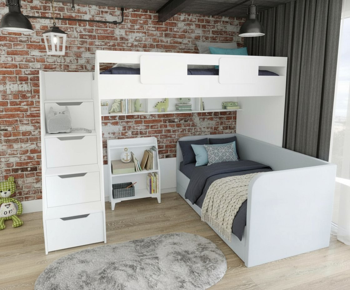 В лестницу встроены выдвижные ящики для игрушек - удобно и практично.