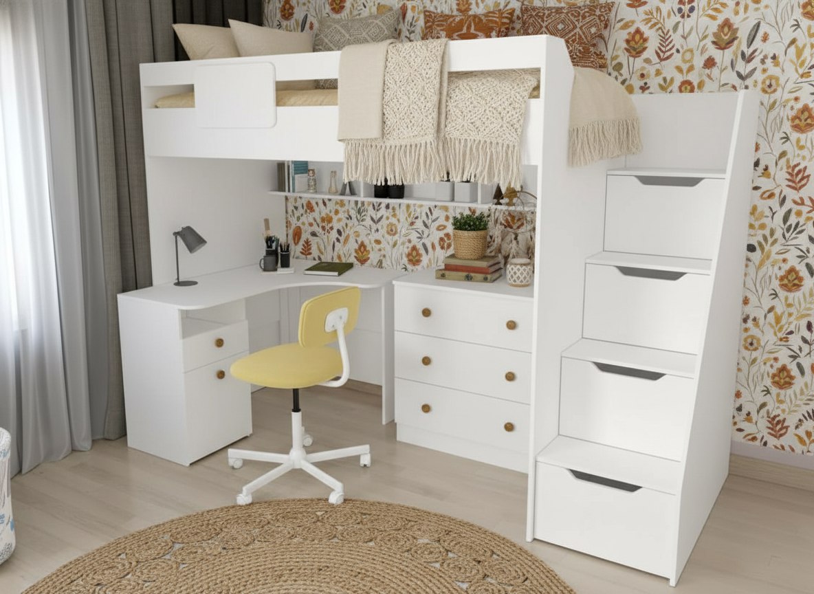 Мебель выполнена из сертифицированного, качественного, экологически чистого ЛДСП класса Е0,5 в белом цвете.