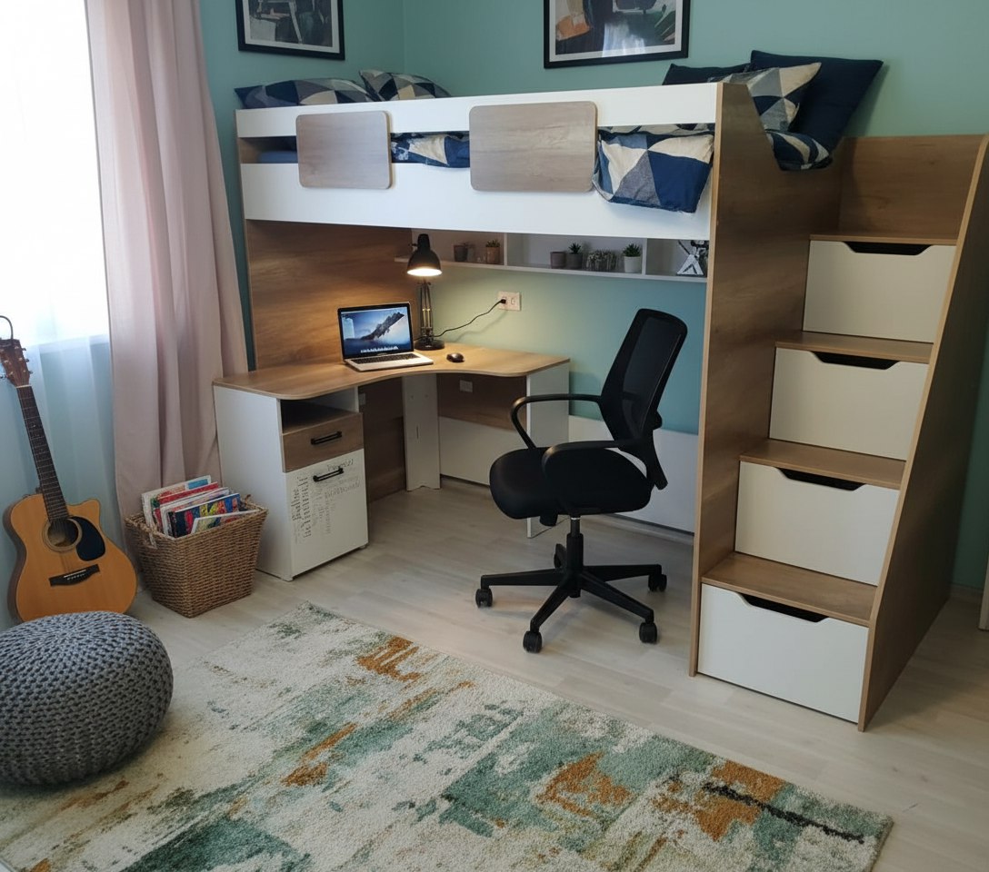 Кровать-чердак коллекции мебели Мозаика