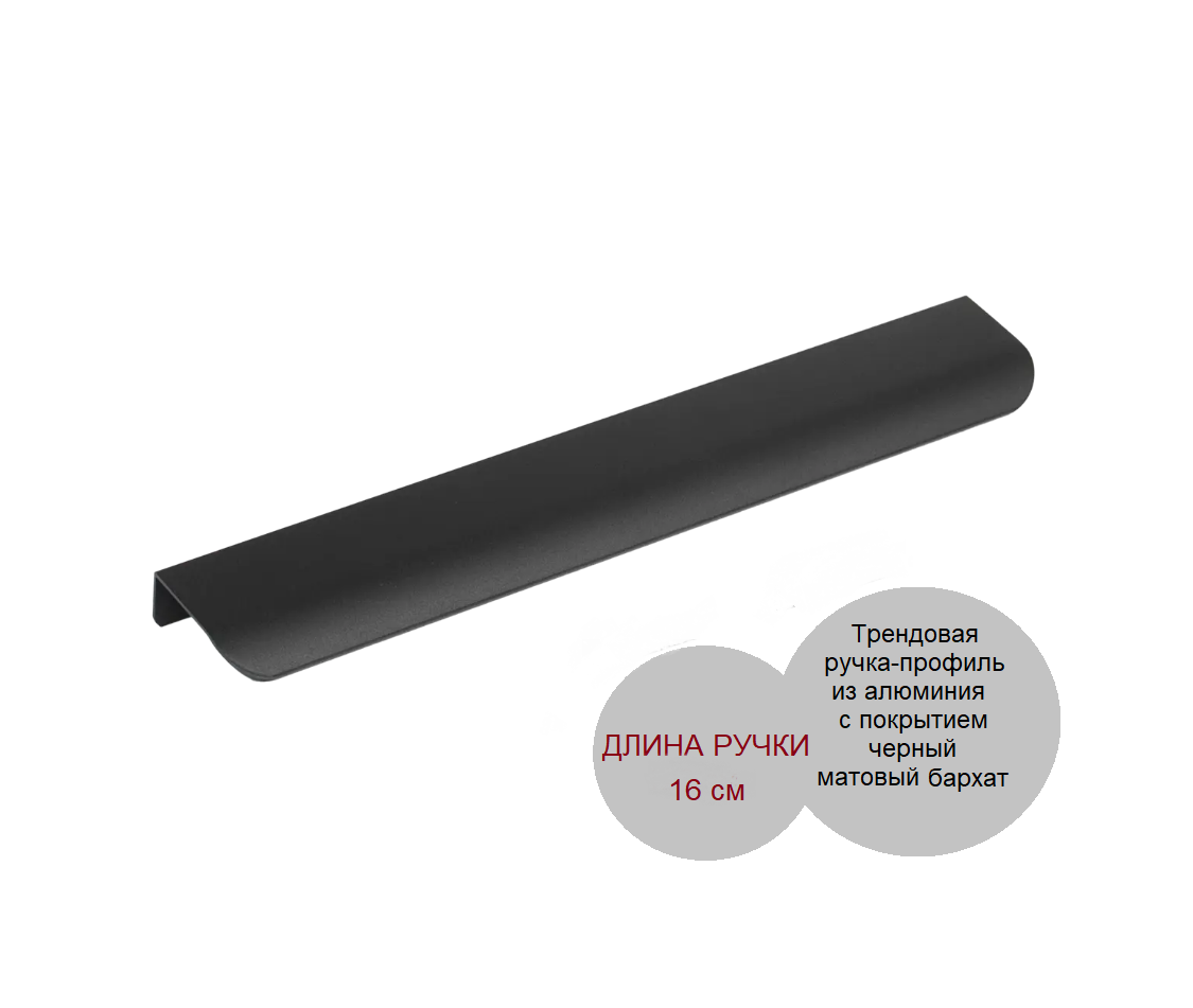 Трендовые ручки-профиль из алюминия с отделкой черный матовый бархат добавляют изделиям стильную изюминку.