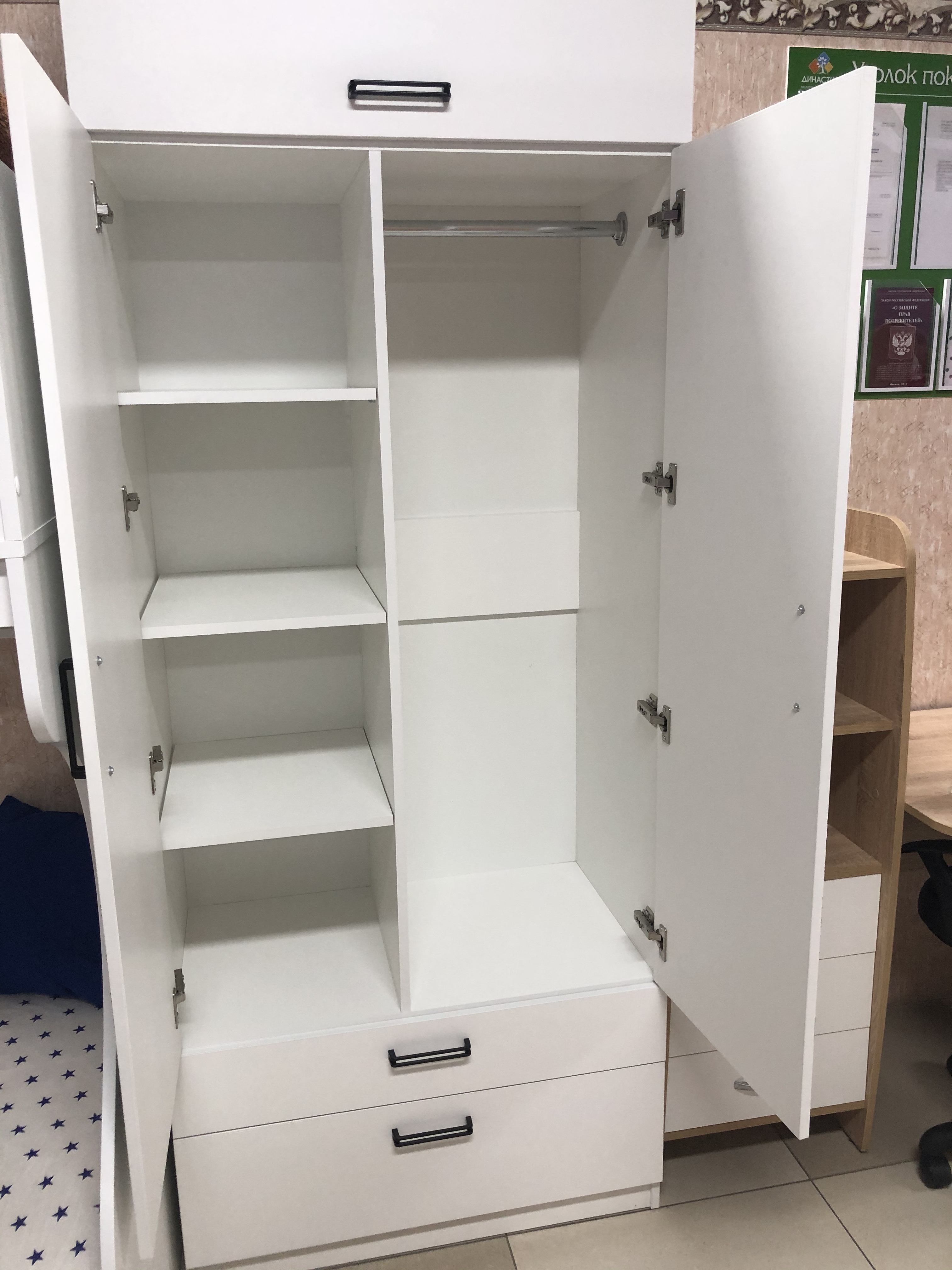 Идеально вписывается в детскую комнату, шкаф очень практичный и вместительный, по своим габаритам отлично подходит и для небольших комнат.