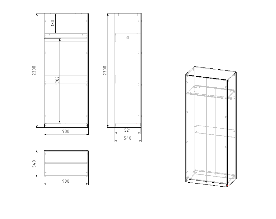 Габариты шкафа: ширина 900, высота 2300, глубина 540 мм