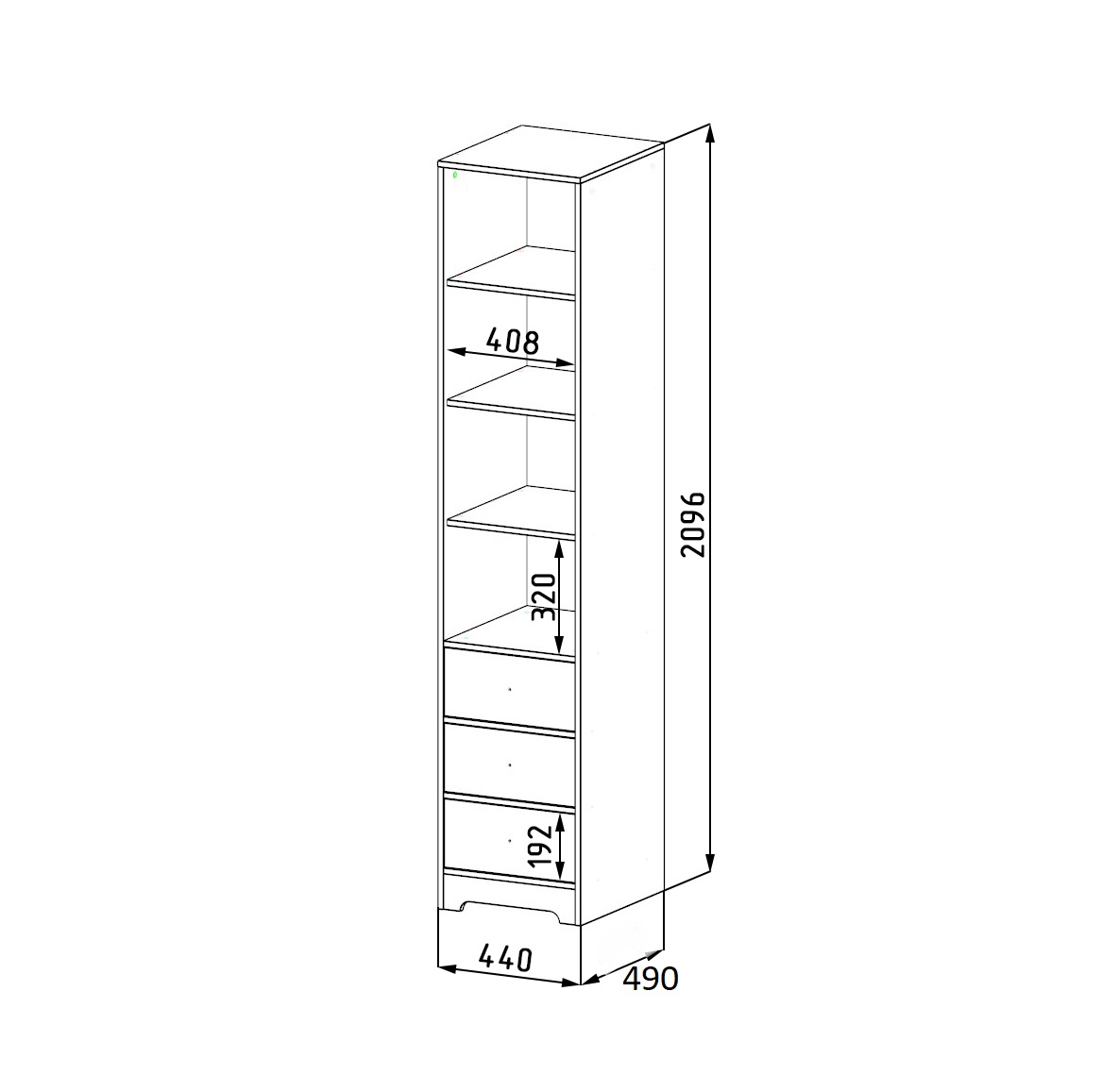 В пенал встроены три выдвижных ящика на направляющих скрытого монтажа с доводчиками.