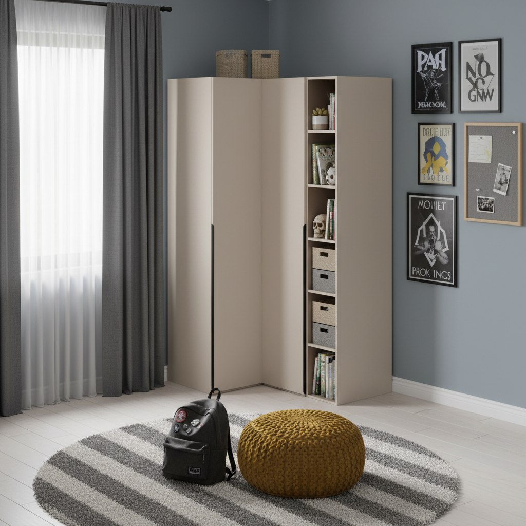 Угловой распашной шкаф + пенал + стеллаж переходной коллекции Брайт Велюр