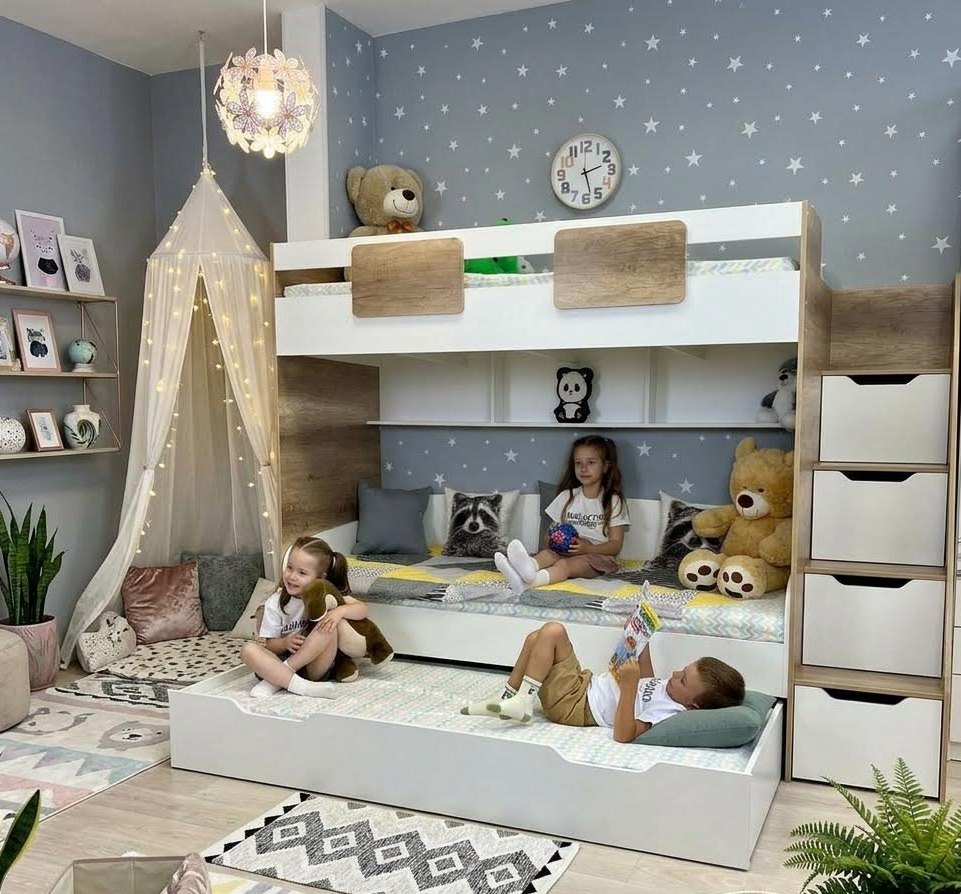 Вместо них - цельный и прочный настил из ЛДСП, который выдерживает сверхвысокую нагрузку и позволяет расположиться даже взрослому с ребенком.