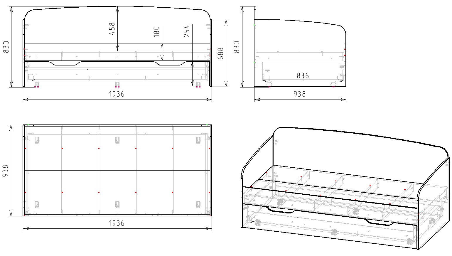Высокая нагрузка на спальные места. Прочные ящики. Высокий, безопасный бортик |